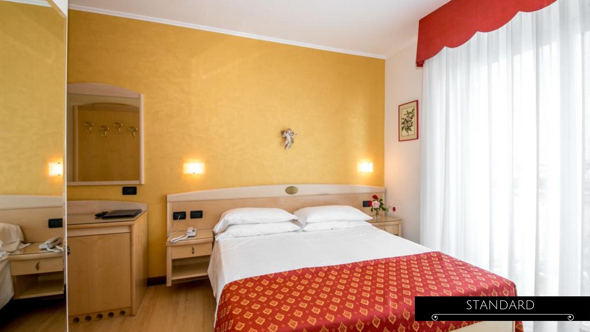 STANDARD max occupancy 2 pax+culla: Camera matrimoniale di circa 16 mq, gode di aria condizionata, Wi-Fi, cassaforte, TV-SAT, telefono e minibar vuoto. Bagno con doccia, WC e asciugacapelli.