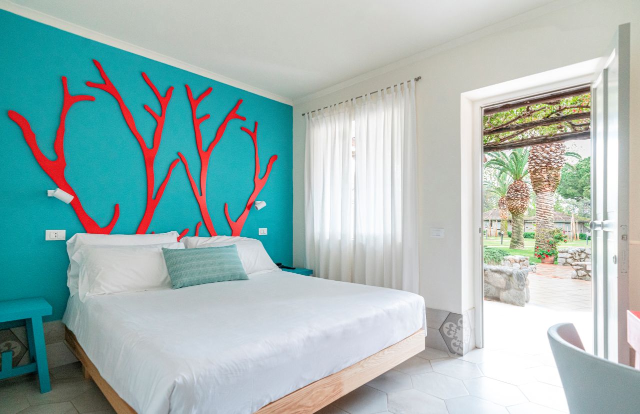 Ogni camera è immersa nel parco,tra pini, ulivi, palme e altre meravigliose varietà botaniche, camere confortevoli. Potrete riposare in ambienti intimi e raccolti, tra sgargianti colori e profumi da rammentare. Avvolti dal calore mediterraneo, sarete supportati da discrete attenzioni, sperimentando in prima persona soluzioni ecosostenibili avendo premura dell’ambiente, che Baia del Sole fortemente supporta.Amici a 4 Zampe