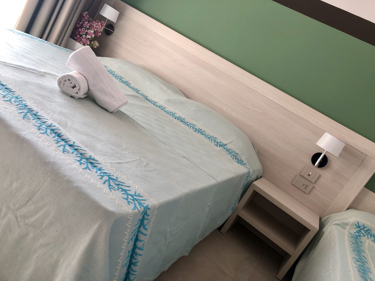 Ampie camere, tutte dotate di aria condizionata, tv, mini-frigo, asciugacapelli e servizi, si suddividono in camere Basic con arredi essenziali e camere Superior, completamente ristrutturate e rinnovate. Le camere Superior sono distribuite tra la zona “Limoni” e la zona “Piscina”; le camere Basic sono situate nella zona “Pineta” in villette e piccole costruzioni immerse nel verde e nell’ombra degli alti pini, separate dal corpo centrale da una strada a fondo chiuso. Sono disponibili camere doppie,matrimoniali, triple, quadruple e comode “Family” 4/5 posti letto, composte da due camere e un bagno.Spiaggia