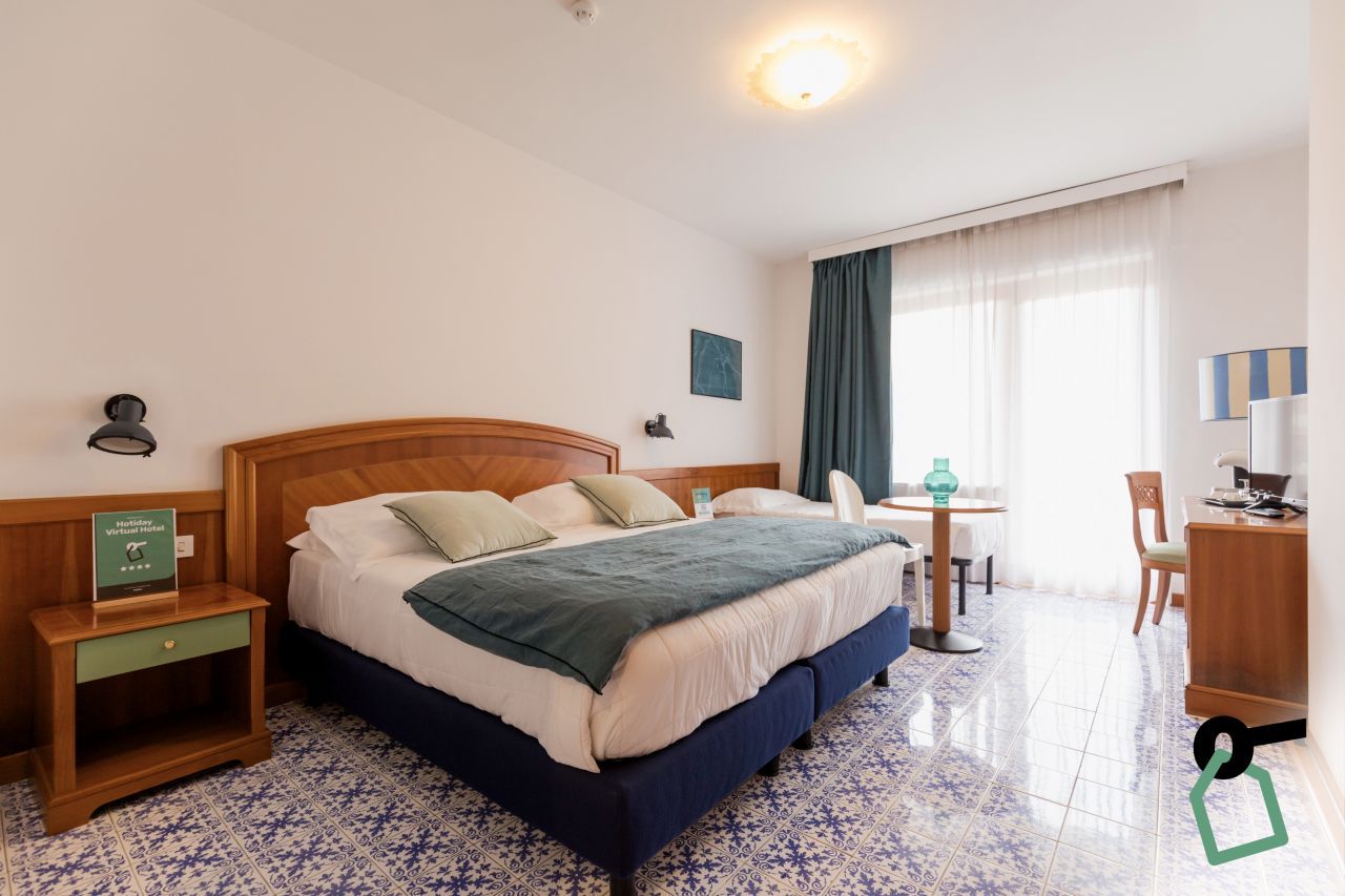 Hotiday Room Collection Sorrento è una selezione esclusiva di camere all’interno di uno splendido hotel 4 stelle nel cuore della città, con piscina panoramica, parcheggio privato, ristorante di cucina tipica e rooftop bar. La piscina sul rooftop regala una vista mozzafiato sul mare e sul centro storico, ed è il luogo perfetto per rilassarsi nelle giornate estive e ammirare tramonti indimenticabili.Qui il tuo soggiorno diventa un’esperienza da ricordare.Sistemazioni