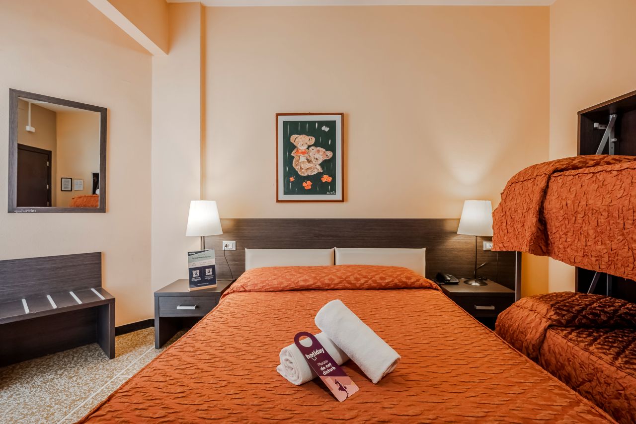 L’Hotiday Room Collection Varazze si trova in una posizione tranquilla e privilegiata, a pochi passi dal centro storico e a soli 100 metri dal mare. Di fronte alla struttura si estende il suggestivo Lungomare Europa, costeggiato da palme e affacciato su una splendida spiaggia di sabbia fine e su acque cristalline. A brevissima distanza si trova il vivace centro del paese, con i caratteristici carruggi liguri (detti anche "budelli"), ricchi di negozi, ristoranti e bar, ideali per passeggiate rilassanti e momenti di svago. Sul retro dell’hotel si apre lo spettacolare entroterra ligure, con il Geoparco del Beigua, perfetto per escursioni nella natura, gite, percorsi in MTB, downhill, parapendio e tante altre attività all’aria aperta. In pochi minuti si raggiunge anche la rinomata Marina di Varazze, animata da yacht, locali alla moda e numerosi eventi, soprattutto durante la stagione estiva. L’hotel rappresenta la soluzione ideale sia per giovani in cerca di divertimento che per famiglie con bambini di tutte le età, offrendo un mix perfetto di relax, natura, sport e vita balneare. L’Hotiday Room Collection Varazze è dotato di aria condizionata, connessione Wi-Fi gratuita e parcheggio privato su prenotazione (a pagamento), per garantire il massimo comfort durante il soggiorno.Sistemazioni