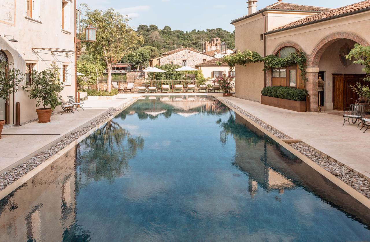 Situato nel Borgo Medievale di Borghetto frazione di Valeggio sulle Rive del Mincio l'hotel è ideale per una vacanza rilassante. Ubicato fra le provincie di Mantova e Verona l'hotel si affaccia sul fiume Mincio offrendo una vista spettacolare sul castello Scaligero e sul ponte Visconteo. È un relais di charme, classificato 4-stelle superior, pensato principalmente per un soggiorno romantico o di relax Offre una splendida piscina infinity riscaldata, che si affaccia sul fiume e sembra fondersi con il paesaggio, oltre ad un’area wellness con sauna, bagno turco, vasca idromassaggio e docce emozionali. All'interno si trova anche una bellissima spa con sauna e bagno turco. E' possibile inoltre affittare delle biciclette per una passeggiata lungo il fiume. L'hotel è adults onlyPosizione