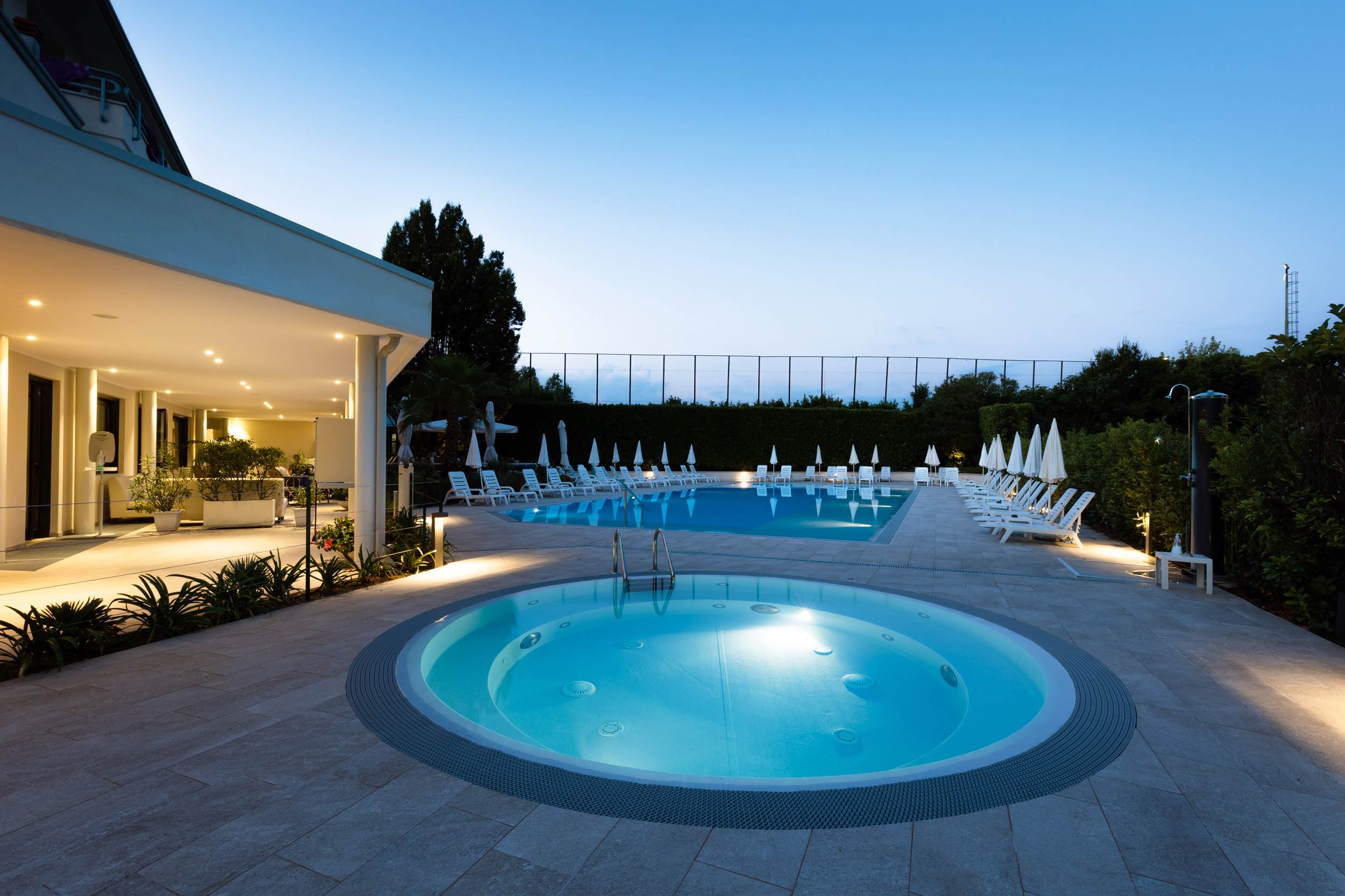 Al secondo piano, piccola zona con 2 vasche idromassaggio e zona relax a pagamento ( posti limitati ). Cabine per trattamenti a pagamento e su prenotazione.