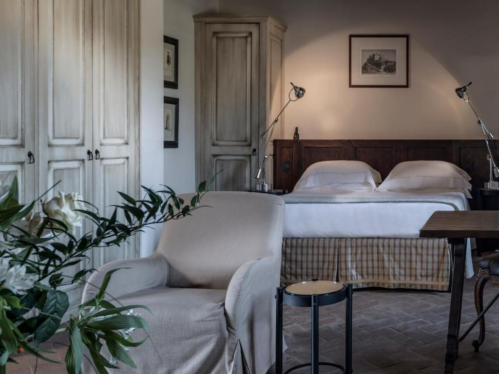 Le camere di Castel Monastero sono distribuite all’interno dell’antico borgo medievale restaurato, caratterizzate da un’atmosfera calda e accogliente che combina elementi rustici con un design elegante e contemporaneo. Ogni sistemazione è arredata con materiali naturali come legno e pietra, e i colori scelti richiamano le tonalità tipiche della campagna toscana, creando ambienti raffinati ma allo stesso tempo confortevoli. Le tipologie di camere variano dalle camere standard alle suite di lusso, alcune delle quali dispongono di caratteristiche speciali come vasche idromassaggio o terrazze con vista panoramica sui vigneti circostanti. Tutte le camere sono dotate di comfort moderni quali aria condizionata, Wi-Fi gratuito, minibar, TV a schermo piatto e bagno privato con set di cortesia di alta qualità. L’atmosfera intima e il rispetto per la tradizione architettonica rendono le camere di Castel Monastero un rifugio ideale per chi cerca relax e un contatto autentico con la Toscana. Se desideri, posso fornirti dettagli sulle diverse tipologie di camere o aiutarti a scegliere quella più adatta alle tue esigenze.La quota comprende