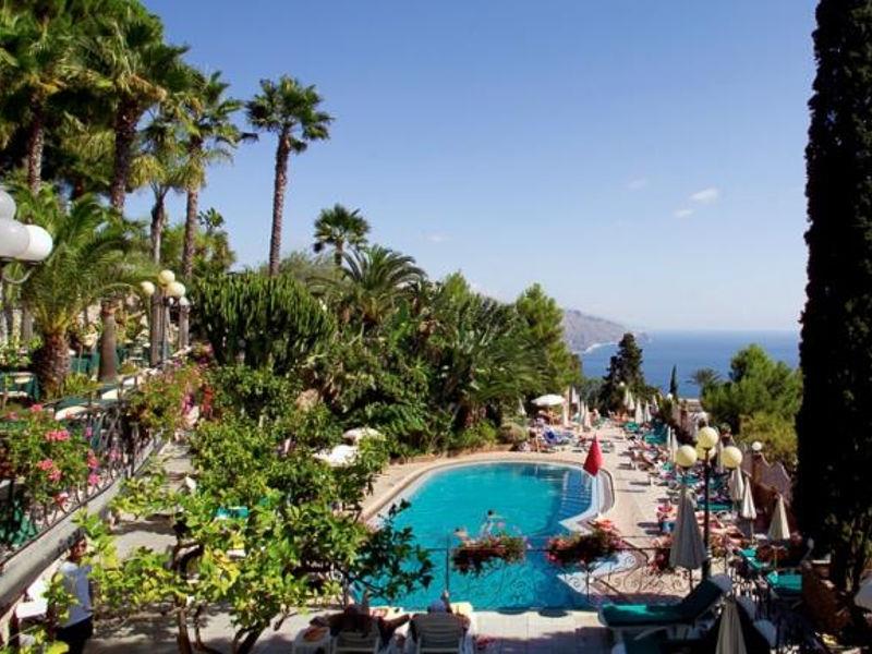 L'elegante e raffinato Hotel Ariston si trova vicino all'antico teatro greco di Taormina, circondato da un parco mediterraneo. L'hotel offre straordinarie viste sulla costa.