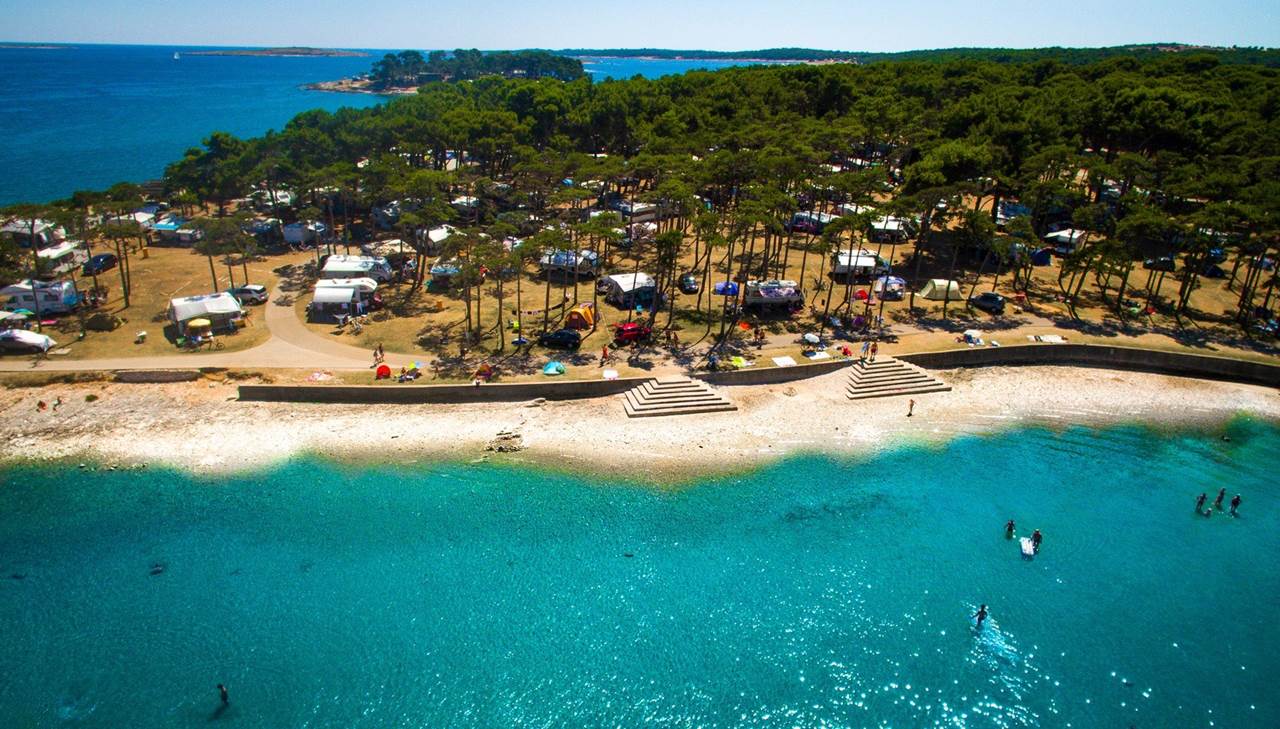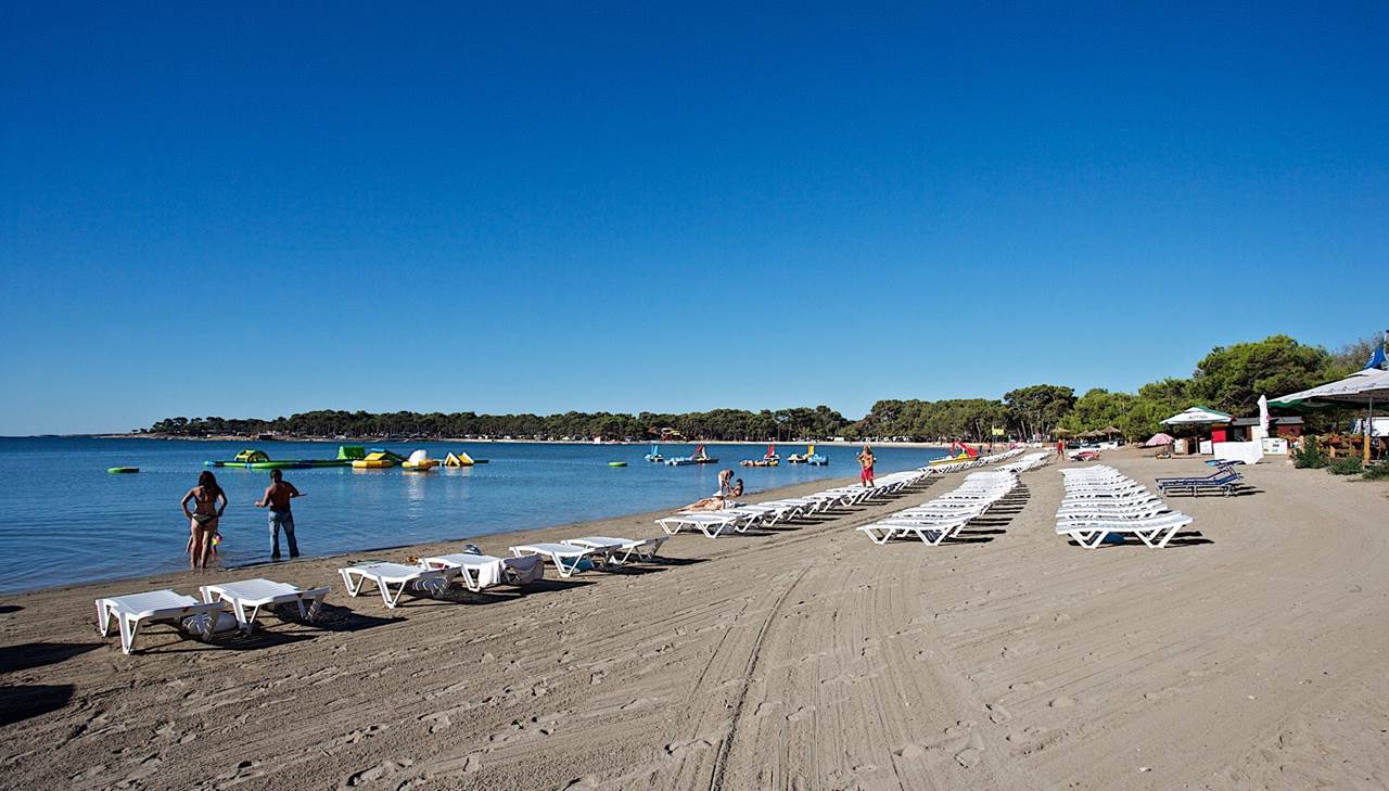 L'ampia baia pittoresca del campeggio Arena Medulin, con numerose insenature, spiagge di ciottoli e sabbia che scendono leggermente verso un mare limpido come il cristallo, è l'ideale per le famiglie con bambini. Nelle vicinanze c'è la spiaggia Bijeca, singolare perché è l'unica spiaggia di sabbia, lunga un chilometro, e la costa rocciosa dalla quale si entra facilmente in mare. Le spiagge sono fornite di docce.Amici a 4 Zampe