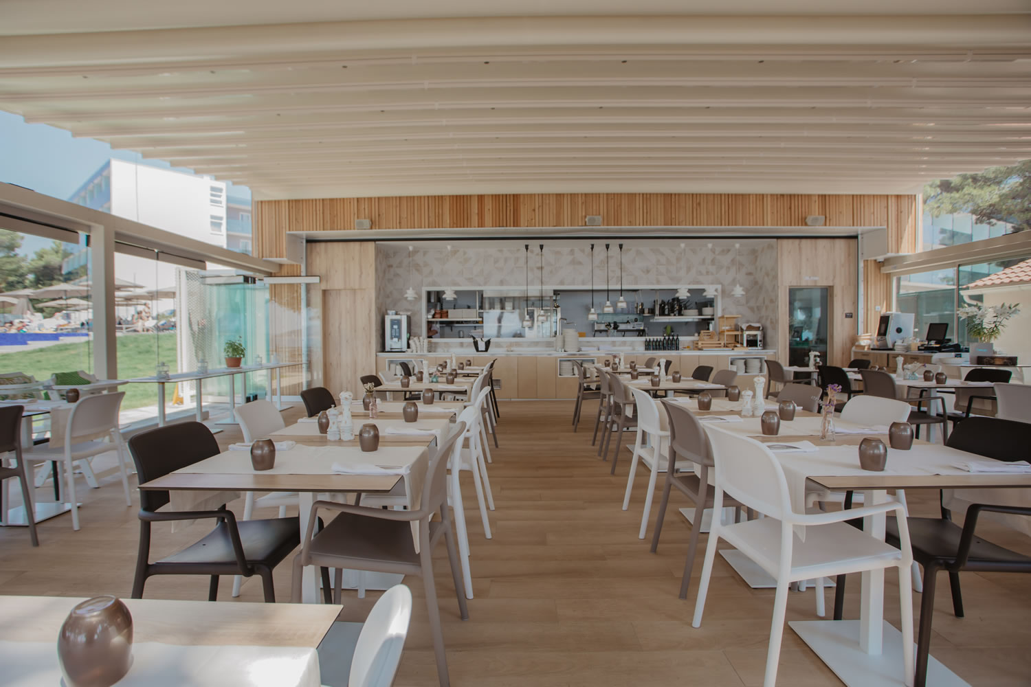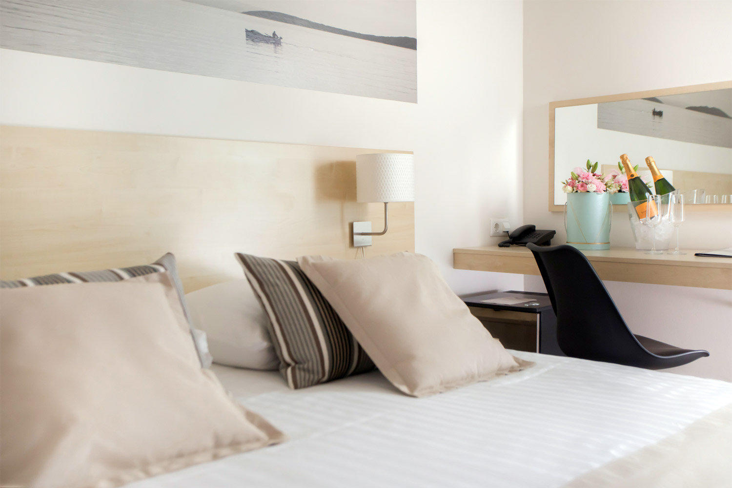Le Ville Arausana & Antonina mettono a disposizione, in due edifici separati, 119 camere elegantemente rifinite e attrezzate. Grazie all’eccellente posizione e forma, 113 camere matrimoniali hanno il balcone e sono orientate verso il mare (lato mare o vista mare) mentre 6 camere singole guardano sul parco. Le camere, dal design lineare e completamente attrezzate al fine di soddisfare le esigenze e abitudini dell’ospite contemporaneo, sono dotate di aria condizionata, minibar, cassetta di sicurezza elettronica, Tv Sat LED, scrivania e balcone con sedie e tavolino. I moderni bagni sono dotati di doccia, asciugacapelli e linea di cortesia accuratamente selezionata.Spiaggia