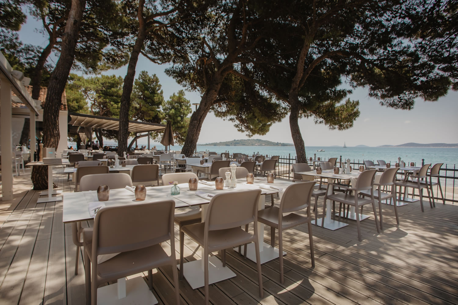 Situate in una delle destinazioni turistiche più popolari della Dalmazia-Vodice, direttamente sulla spiaggia e a pochi passi dal centro città, le Ville Arausana e Antonina offrono ai loro ospiti camere confortevoli e moderne e il concetto di servizio personalizzato e di alta qualità. Quasi completamente rinnovate e dal design moderno, le Ville offrono un servizio di alloggio di qualità superiore e l'opportunità di godere dell'offerta gastronomica del ristorante e del bar sulla spiaggia La Belle Vie situato proprio sulla spiaggia dalla cui terrazza si può godere di una spettacolare vista sul mare. Trascorrete le vostre vacanze in ville di lusso in una splendida posizione, gustate un'ottima colazione a buffet mentre vi godete la splendida vista sul mare e rilassatevi bevendo il vostro drink preferito sulla terrazza del bar sulla spiaggia La Belle Vie vicino al mare.Sistemazioni