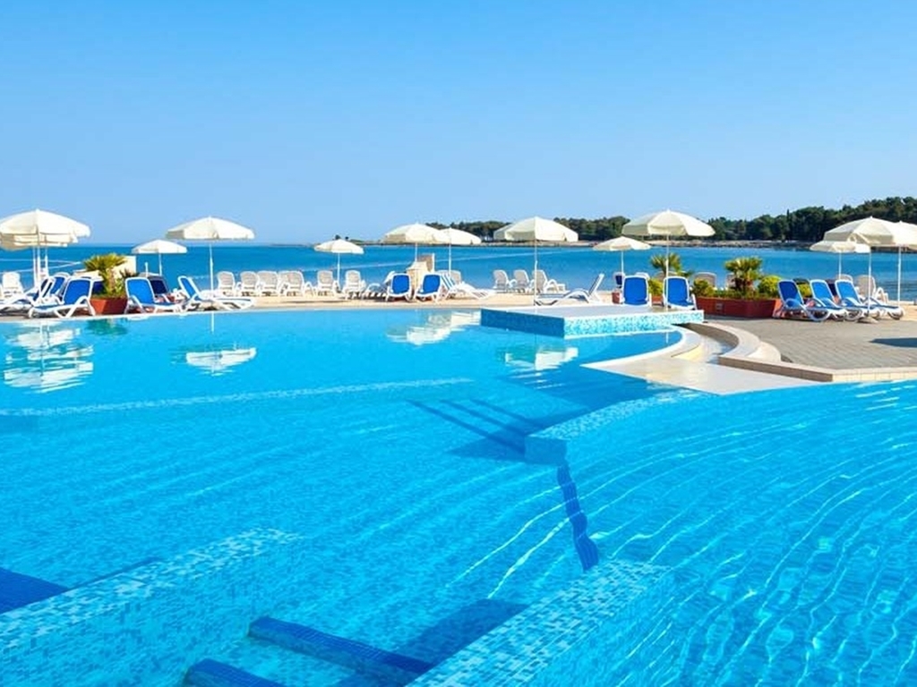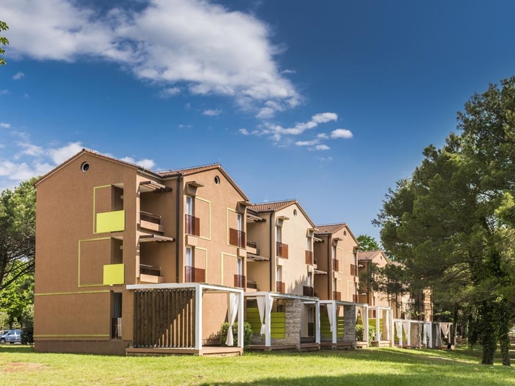Introduzione: Complesso di appartamenti immersi in una pineta silenziosa e riservata, situati a pochi passi dal mare, offrono la soluzione ideale per chi vuole trascorrere delle vacanze attive all'insegna della quiete e del relax.CARATTERISTICHE: dispone di ristorante a buffet e à la carte, snack bar, caffetteria, fast food, grande piscina all'aperto per adulti e bambini attrezzata con sedie a sdraio (disponibili fino ad esaurimento), market, ambulatorio medico, connessione Wi-Fi. Parcheggio privato a pagamento. RISTORAZIONE: possibilità di servizio mezza pensione (colazione + cena a buffet) a richiesta con supplemento.APPARTAMENTI: arredati modernamente e con gusto, sono ubicati al piano rialzato con terrazzo oppure al primo piano con balcone. Sono dotati di aria condizionata, TV Sat, connessione Wi-Fi, telefono, angolo cucina completamente attrezzato, servizi privati con box doccia. Classic 2+1 posti (28 mq): camera matrimoniale, soggiorno con divano letto singolo. Superior 2+2 posti (28 mq): camera matrimoniale, soggiorno con divano letto a 2 posti e piccolo balcone attrezzato. Premium 2+2 posti (30 mq): camera matrimoniale, soggiorno con divano letto a 2 posti e ampio terrazzo attrezzato. SPIAGGIA: prevalentemente di ghiaia, roccia e piattaforme pavimentate, di fronte all'hotel. Possibilità di noleggio ombrelloni e sedie a sdraio (a pagamento).SERVIZI: Pepi Club Baby, Kids, Junior e Teens (21.06 - 29.08) e intrattenimento serale per adulti e bambini. A pagamento, nelle vicinanze: campi da tennis al coperto, centro "Sport" (calcio, pallamano, basket, pallavolo, badminton), sport acquatici, beachvolley, maneggio, noleggio biciclette, trenino turistico da/per il centro di Umago.INFORMAZIONI UTILI: Consegna di lenzuola e copripiumini ogni tre giorni e cambio prima dell’arrivo di nuovi ospiti. Il cambio degli asciugamani avviene ogni secondo giorno nel rispetto del “programma ECO” (vengono cambiati solo gli asciugamani usati dall’ospite). Pulizia finale dell’appartamento è inclusa nel prezzo. Animali di piccola taglia ammessi con supplemento.