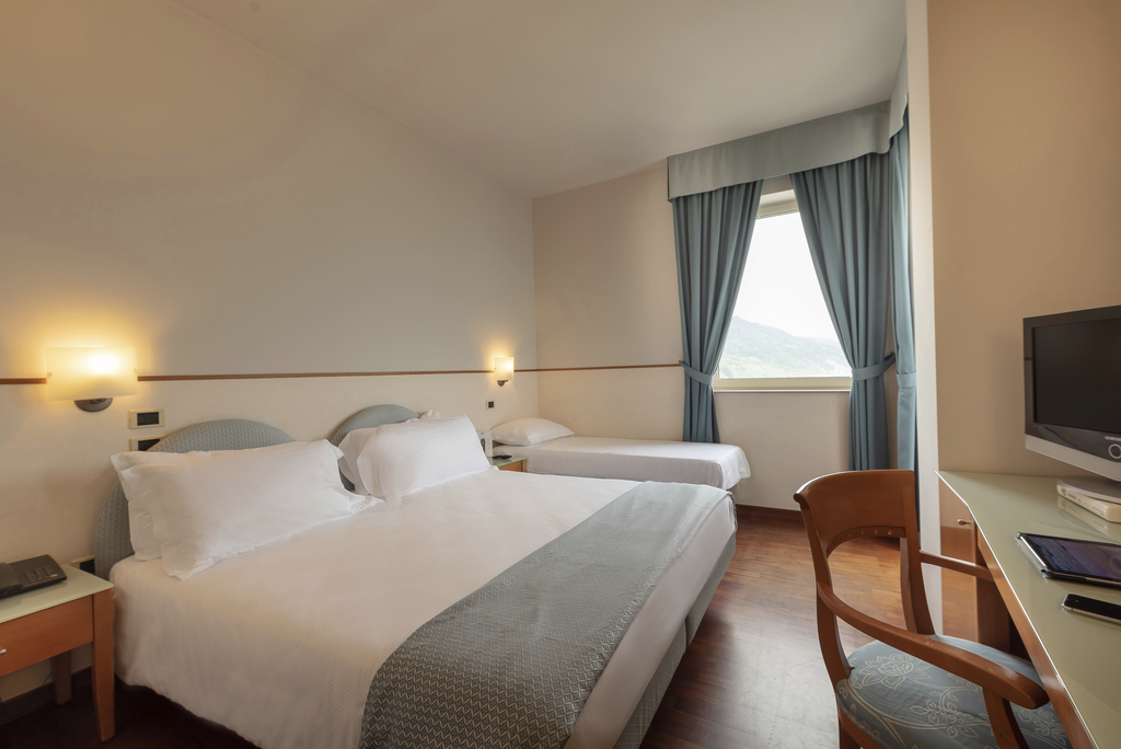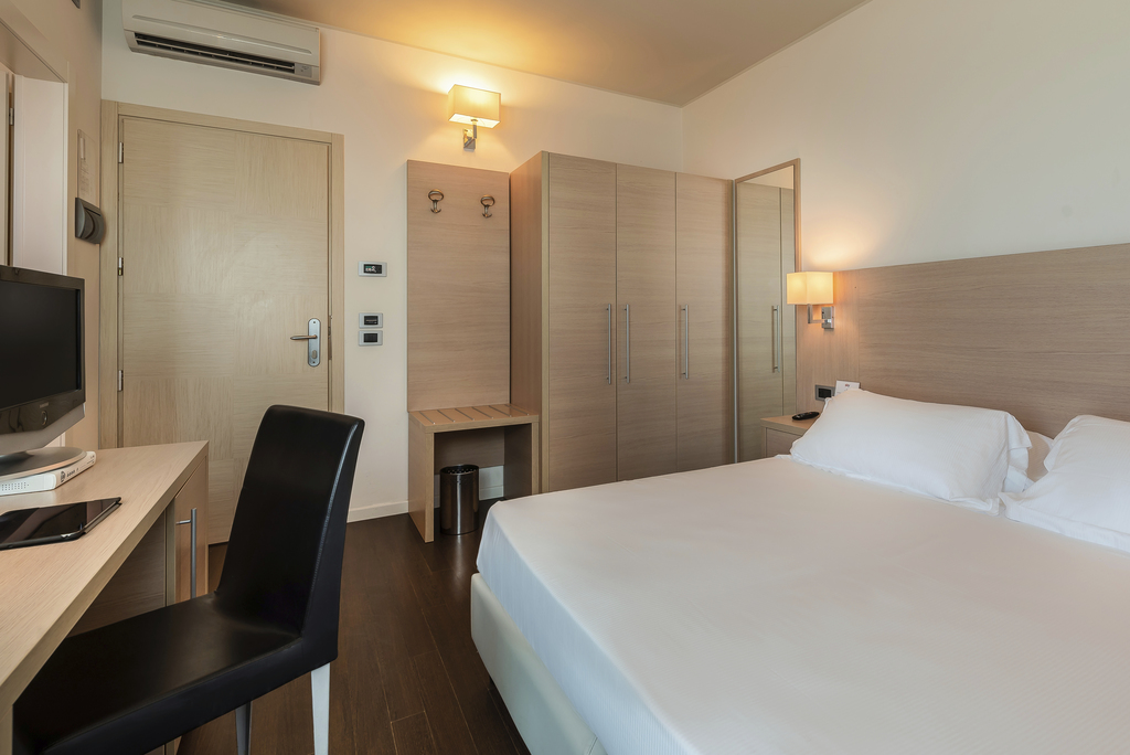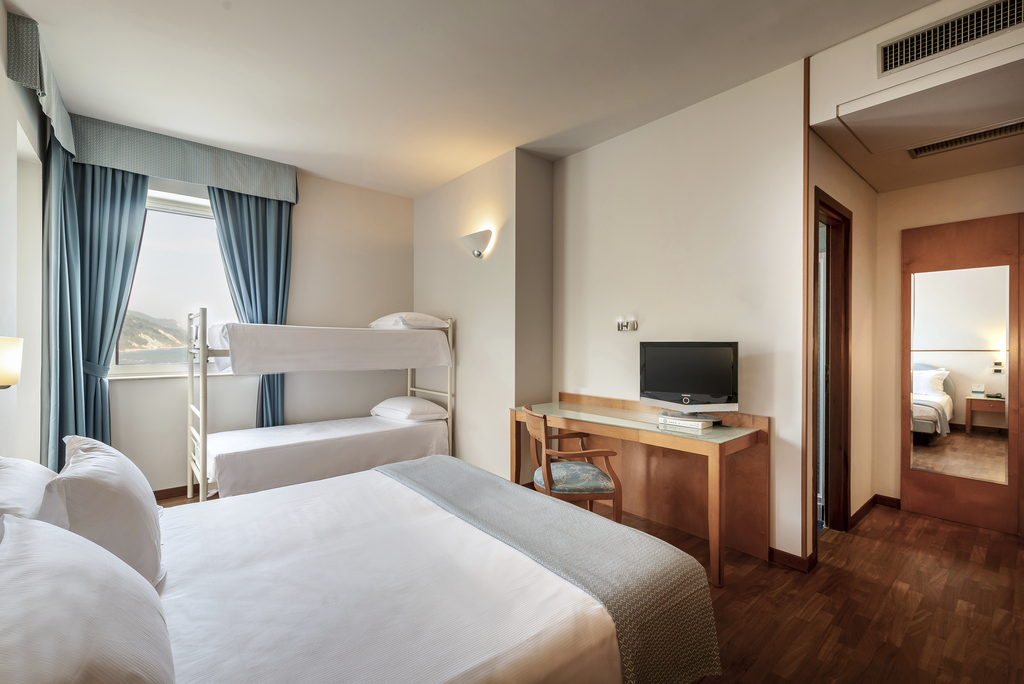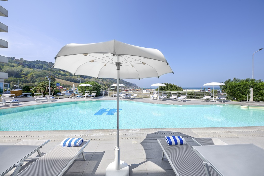 Introduzione: Hotel moderno ed accogliente, è situato in posizione fronte mare nell’incantevole Baia Flaminia di Pesaro, ai piedi del Parco Naturale del Monte San Bartolo a 2,5 km dal centro storico. CARATTERISTICHE: completamente climatizzato e privo di barriere architettoniche, dispone di reception 24h, ascensore, american bar, soggiorno con TV, ampia sala ristorante vista mare, due piscine, una delle quali con vista panoramica sulla baia attrezzate con lettini e ombrelloni (fino ad esaurimento). Spa Centro Benessere (a pagamento), dotato di piscina interna con massaggio cervicale, idromassaggio e sauna; massaggi e trattamenti estetici su richiesta a pagamento. Parcheggio esterno e garage (entrambi a pagamento su prenotazione).RISTORAZIONE: ricca colazione a buffet dolce e salato con torte e crostate fatte in casa, cucina tipica marchigiano-romagnola con ricco servizio a buffet, ampia scelta di vivande con ingredienti stagionali di prima qualità, primi e secondi piatti a base di carne e pesce, piatti vegetariani, buffet di antipasti misti, verdure e insalate fresche. Possibilità di preparazione pasti per celiaci con alimenti di base forniti dall'hotel (no AIC). Baby menu con brodi vegetali, pastine e verdure bollite (possibilità di orari flessibili ai pasti). Baby Corner in sala ristorante con microonde.CAMERE: Classic: in gran parte con balcone, dispongono di telefono, TV LED 21”, Wi-Fi free, aria condizionata, frigobar, cassaforte e servizi privati box doccia e asciugacapelli; Deluxe: camere eleganti e luminose dotate di balconcino privato con arredamento completamente rinnovato in stile moderno e all'avanguardia. Dispongono di aria condizionata/riscaldamento indipendente, minibar, TV 43”, cassaforte, bagno con doccia, set di cortesia deluxe, aciugacapelli e macchina del caffè.ALL INCLUSIVE: comprende aperitivo di benvenuto (sabato), le bevande illimitate alla spina durante i pasti (acqua, vino locale, birra e soft drinks), caffè dopo i pasti, open bar con distributori di soft drinks dalle 10:00 alle 22:00, merenda pomeridiana per i bambini, 2 bottigliette d’acqua nel frigobar al giorno, il servizio spiaggia (1 ombrellone + 2 lettini a camera) e 2 teli mare a camera per 2 adulti (eventuale cambio € 3 cadauno, cauzione € 10 cadauno), merenda pomeridiana per bambini, torta dell'arrivederci (venerdì).TESSERA CLUB: obbligatoria (a partire dai 4 anni) comprende: Mini Club giornaliero (4-12 anni) in hotel e spiaggia, laboratori (09:30-12:30 e 16:00-18:30), baby dance, tornei sportivi per ragazzi e genitori, cabaret, spettacoli serali (in base al programma settimanale), ping pong, corsi di nuoto collettivi, aquagym.SERVIZI: biciclette ad uso gratuito a tempo (cauzione € 10 a servizio), Wi-Fi free in tutta la struttura. Scalda biberon, vaschette per il bagnetto e lucine per la notte (su richiesta fino ad esaurimento). A pagamento: servizio baby-sitter.
