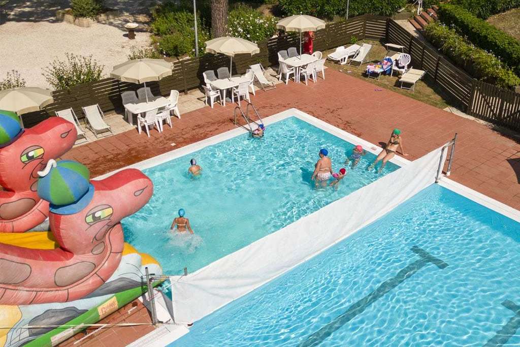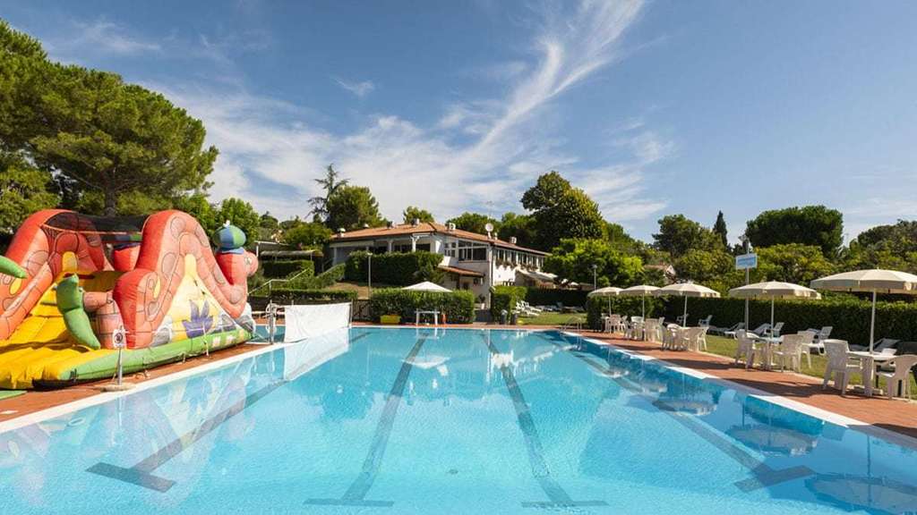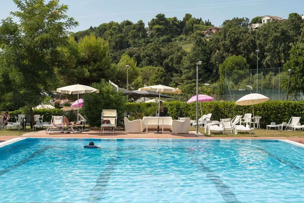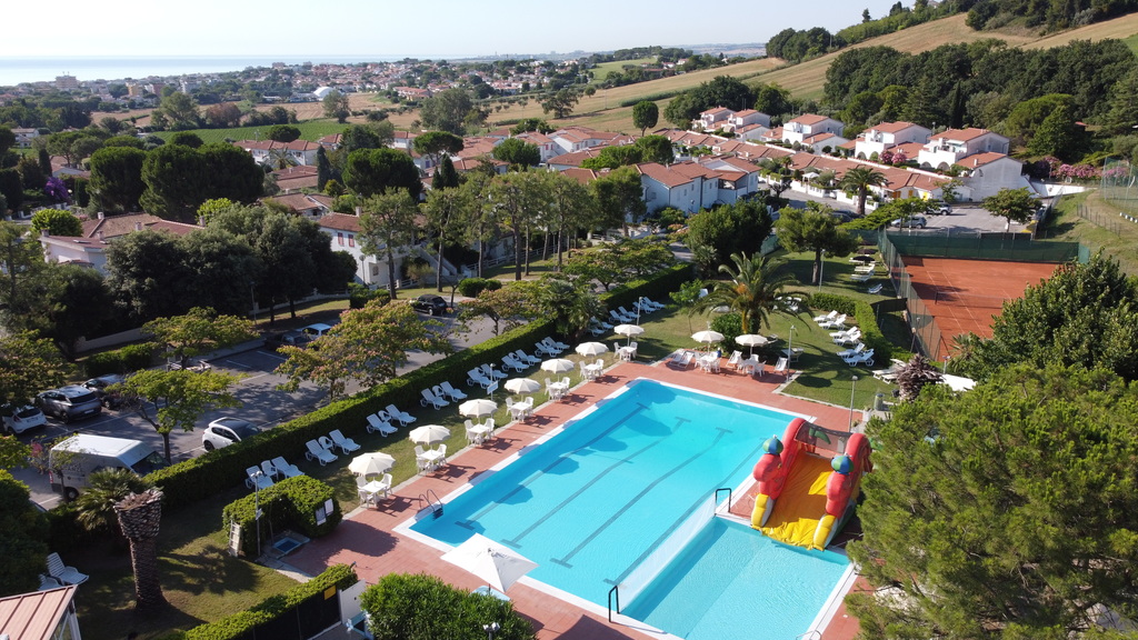 Introduzione: Esclusivo complesso residenziale non recintato di ville e appartamenti immersi nel verde e sviluppato sul versante collinare a 700 m dal mare. L'intero villaggio è disposto ad anfiteatro ed è perfettamente inserito nell'ambiente della macchia mediterranea del Conero, con vista sulle incantevoli spiagge di Numana.CARATTERISTICHE: reception con punto d’accoglienza, ristorante-pizzeria, bar, ampia piscina (240 mq) per adulti e per bambini (dal 08.06 al 08.09) circondata da un'ampia zona solarium attrezzata con lettini, sdraio, tavolini ombreggiati e sedie. Parcheggio gratuito garantito.APPARTAMENTI: in muratura situati al piano terra o al primo piano, dispongono di terrazza o balcone (alcuni con giardino e aria condizionata), TV LCD e servizi privati con box doccia. Possono distare fino a 1.500 m dal mare, raggiungibile con sentiero pedonale, con mezzi propri (in spiaggia sono disponibili ampi parcheggi convenzionati a pagamento) o con navetta gratuita (dal 26.06 al 05.09) con frequenza ogni 45 minuti circa. BILO 4: soggiorno con divano letto doppio, camera matrimoniale/doppia e angolo cottura. TRILO 5: soggiorno con un posto letto, due camere matrimoniali/doppie (una può avere il letto a castello).ANIMAZIONE E ATTREZZATURE SPORTIVE: Mini Club (4-10 anni) e Junior Club (11-18 anni) dal 15.06 al 30.08, uso gratuito al mattino di canoe e SUP, giochi in piscina e aquagym. Ingresso al Centro Sportivo (1.000 mq) con due parchi giochi, ping-pong, calciobalilla. A pagamento, campi da tennis e calcetto.SERVIZI: a 2 km circa si trovano bar, bazar, supermercato, tabacchi, edicola e guardia medica. Servizio spiaggia incluso (1 ombrellone + 2 lettini ad appartamento) presso gli ampi e spaziosi stabilimenti “La Perla” e “Taunus” con spiaggia e trasparenti fondali di piccoli sassolini.