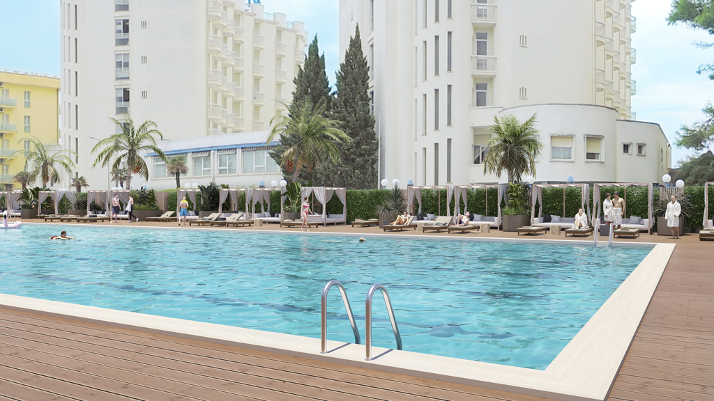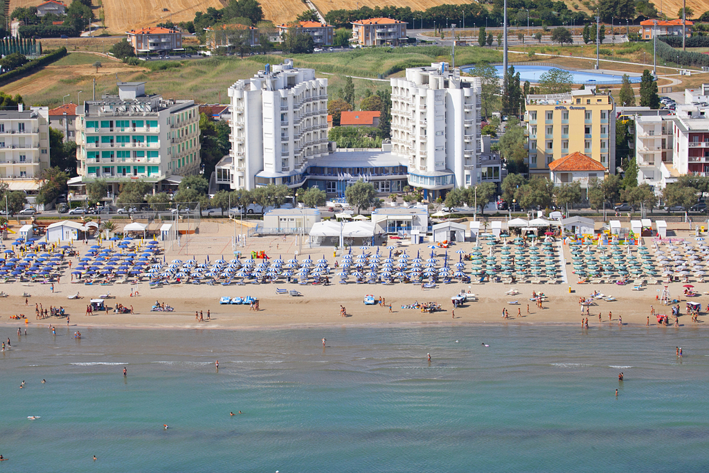 Introduzione: Struttura moderna completamente ristrutturata nel 2025, è situata direttamente sul lungomare Alighieri, a pochi passi dal centro.CARATTERISTICHE: completamente climatizzato, dispone di ampia sala ristorante, quattro ascensori, bar, tre piscine all’aperto di cui due per bambini con area solarium. Parcheggio privato scoperto recintato, disponibile a pagamento fino ad esaurimento posti.RISTORAZIONE: ricca colazione a buffet dolce e salato, cucina nazionale e tipica marchigiana a buffet con ampia scelta di piatti a base di carne, pesce, antipasti, contorni, frutta e prelibati dolci. Pasti differenziati per bambini, vegetariani e vegani a richiesta.CAMERE: Comfort: solo doppie, sono dotate di balcone arredato vista mare, aria condizionata, Wi-Fi free, telefono, TV LCD, mini frigo, cassetta di sicurezza, servizi privati con box doccia e asciugacapelli; Superior: con le medesime dotazioni e di dimensioni maggiori, ospitano il terzo letto.TESSERA CLUB: obbligatoria (dai 3 anni) dal 14.06 al 07.09 comprende: Mini Club in area giochi per bambini in spiaggia e in piscina.SERVIZI: animazione in hotel dal 08/06 al 19/09. Wi-Fi free in tutta la struttura, biciclette a disposizione (secondo disponibilità), tessera bus navetta gratuita per la città. A pagamento: campo da padel, corsi di padel e nuoto. In spiaggia privata: Mini Club (3-12 anni), area giochi per bambini, campi da beach volley e beach tennis. Servizio spiaggia (1 ombrellone + 1 sdraio + 1 lettino a camera) con tariffe a richiesta.SUPPLEMENTI DA SALDARE IN LOCO: Tessera Club obbligatoria dal 14.06 al 07.09: adulti € 25 per persona a settimana, 12-16 anni € 20, 3-12 anni € 15. Parcheggio: € 10 al giorno. Animali di piccola taglia (max 10 kg): € 10 al giorno.