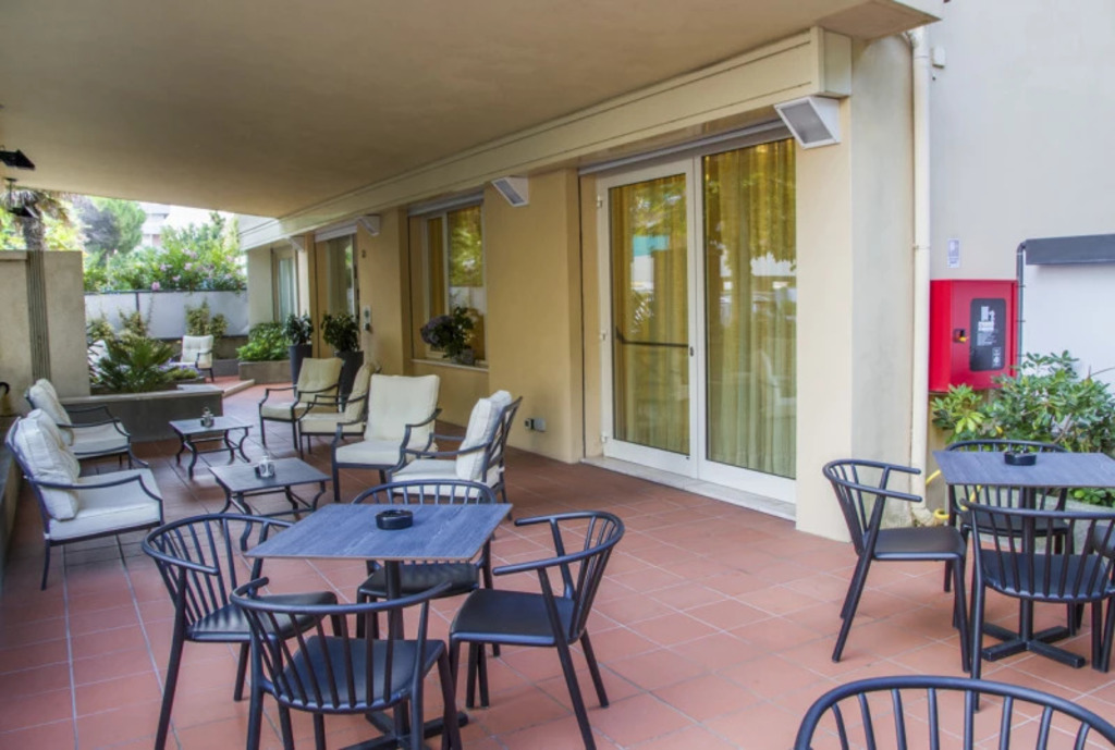 Introduzione: Situato in posizione centrale a pochi passi dal mare e dalla passeggiata di Viale Dante, a solo 1 km dal centralissimo Viale Ceccarini.CARATTERISTICHE: completamente climatizzato e privo di barriere architettoniche, dispone di reception e bar aperti h24, ascensore, soggiorno, sala ristorante e spazio esterno attrezzato per il relax degli ospiti. Parcheggio (scoperto e incustodito) adiacente all'hotel a pagamento fino ad esaurimento posti.RISTORAZIONE: ricca colazione a buffet dolce e salato con dolci fatti in casa, cucina nazionale e tipica romagnola, tre menù a scelta a base di carne, pesce e vegetariano, buffet di antipasti, contorni e verdure. Pasti differenziati per bambini a richiesta. Pappe e brodini freschi per i più piccoli. Possibilità di preparazione pasti per celiaci con alimenti di base forniti dall'hotel (no AIC).CAMERE: recentemente ristrutturate ed insonorizzate, sono dotate di balcone, tapparelle elettriche, TV LCD 24”, aria condizionata indipendente, cassaforte, Wi-Fi free e servizi privati con box doccia e asciugacapelli. Camere comunicanti fino a 4 posti (matrimoniale + letto a castello, ognuna con il proprio bagno) e a norma per disabili su richiesta.TUTTO INCLUSO: comprende le bevande ai pasti (acqua, vino locale o soft drinks) e il servizio spiaggia (1 ombrellone o tenda + 2 lettini a camera).SERVIZI: Wi-Fi free, serata romagnola e a tema. In spiaggia convenzionata (Bagni 93/94 o Rina 99): baby park, animazione per adulti e bambini, balli di gruppo, risveglio muscolare, sport sulla sabbia, Wi-Fi free e area riservata per cani su prenotazione a pagamento.