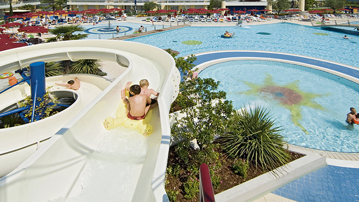 * Utilizzo delle piscine esterne per adulti e bambini attrezzate con ombrelloni e lettini secondo disponibilità