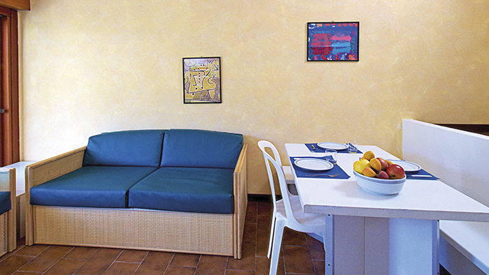 - Bilocali tipo A Classic: (30 mq), sono composti da una camera matrimoniale e soggiorno con divano letto alla francese. Occupazione massima: 4 adulti.