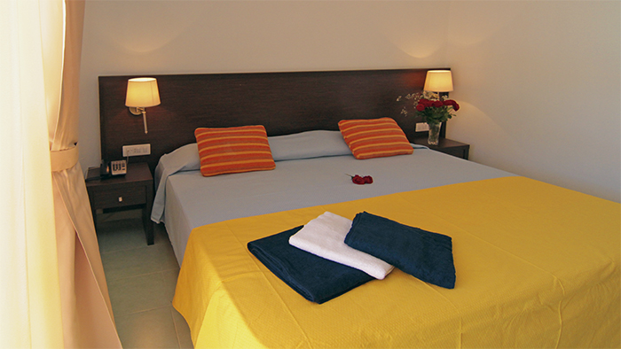 Le camere (occupazione massima 4 adulti) dispongono di servizi privati con doccia, asciugacapelli, Tv-Sat, aria condizionata, cassaforte e minifrigo. Si distinguono in camere Comfort, con letto a castello, e camere Suite Garden composte da camera matrimoniale e soggiorno con divano letto matrimoniale o letto a castello, patio o terrazza attrezzata. Disponibili camere doppie uso singolo (solo camere Comfort). Su richiesta al call center: camere doppie per ospiti diversamente abili, camere Suite Laguna.