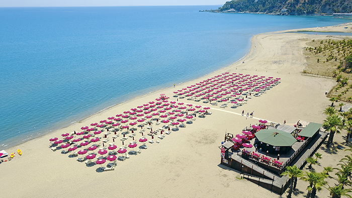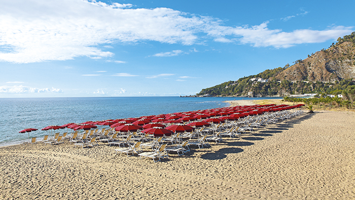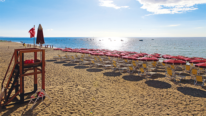 La spiaggia di sabbia privata dista 400 metri dalla struttura ed è raggiungibile a piedi percorrendo un viale interno. Il servizio spiaggia è incluso nella Tessera Club e comprende ombrelloni, lettini e sdraio secondo disponibilità (a partire dalla 2° fila), sono inoltre presenti un bar, docce e servizi.