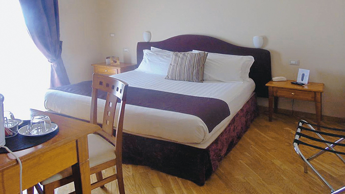 Le camere Standard (12-20 mq - occupazione massima 3 adulti) dispongono di servizi privati con doccia, asciugacapelli, telefono, Tv-Sat, minibar, cassaforte, connessione Wi-Fi (gratuita). Sono disponibili camere singole con letto alla francese.