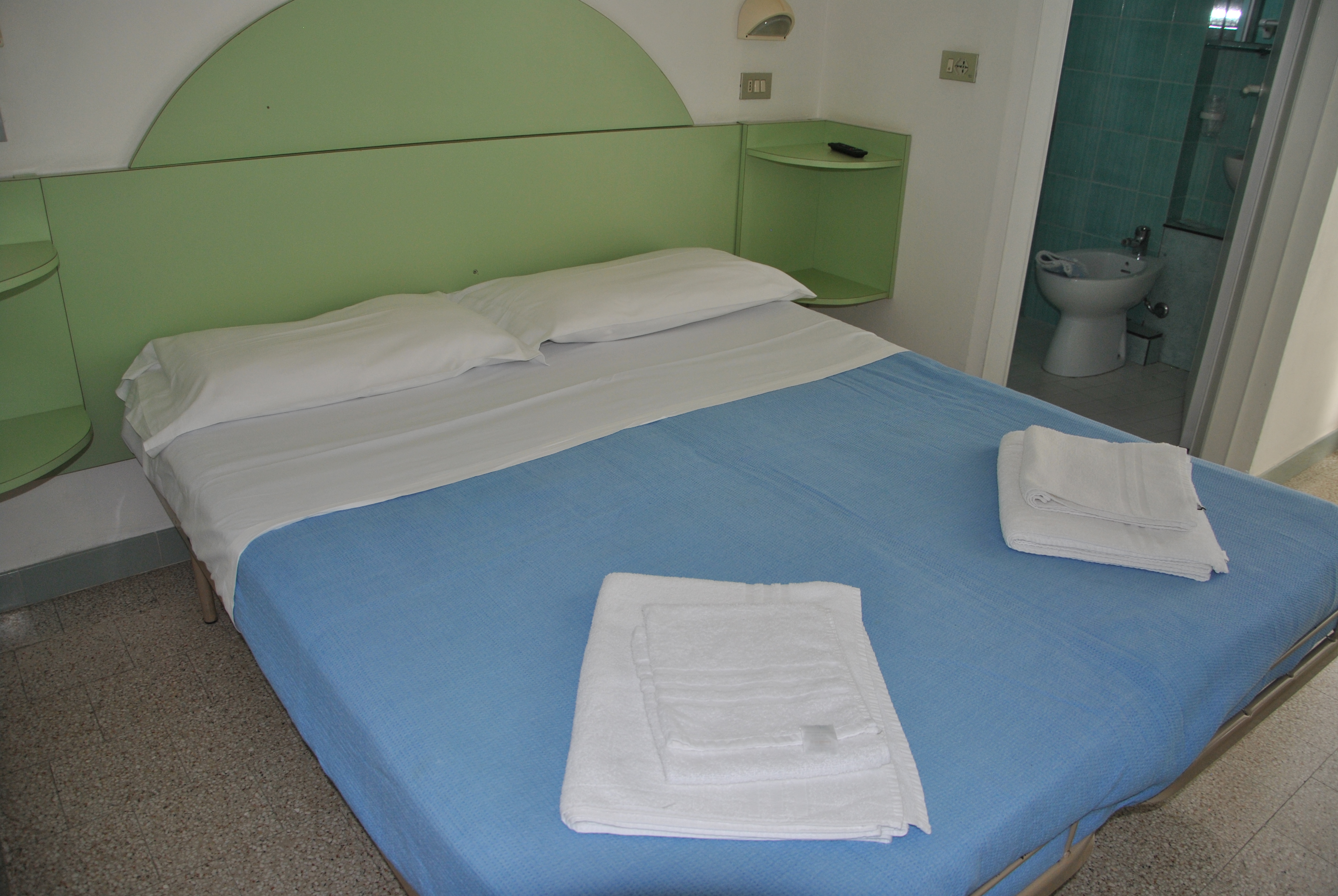 Le camere Standard (occupazione massima 4 adulti) sono arredate in modo semplice ed essenziale e dispongogno di servizi privati con box doccia, asciugacapelli, aria condizionata, ventilatore a soffitto, TV-Sat, telefono, cassaforte, connessione Wi-Fi (gratuita), balcone. Le camere quadruple possono avere letto a castello. Su richiesta al call center: camera Singola (supplemento 18 euro per camera a notte), camera Doppia Uso Singola (supplemento 25 euro per camera a notte).