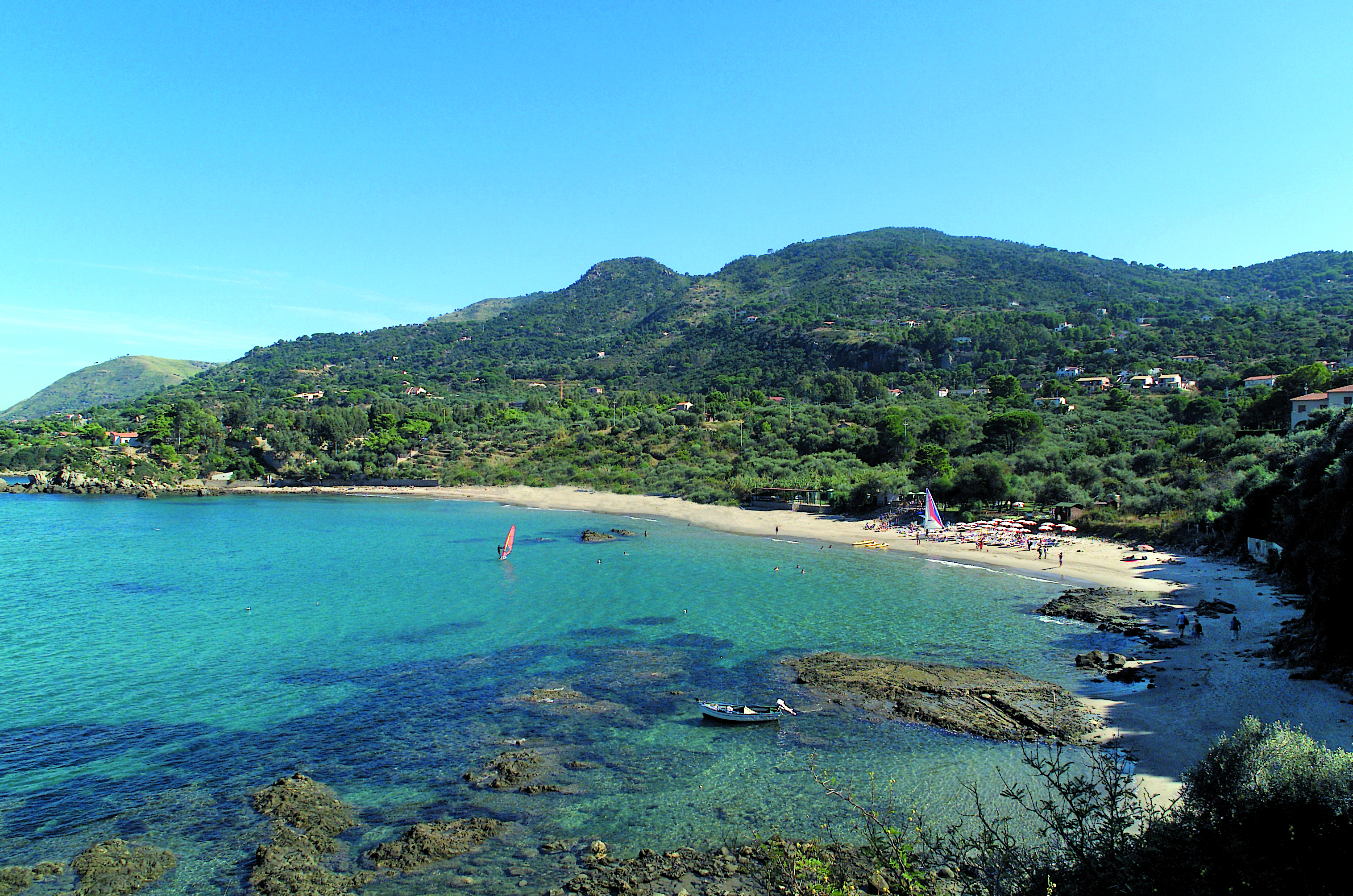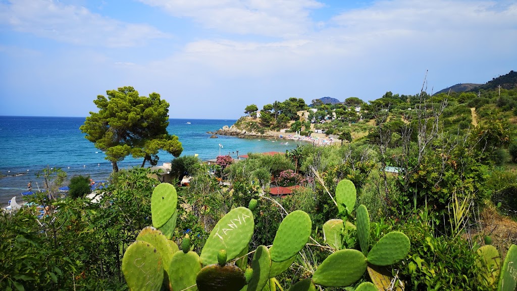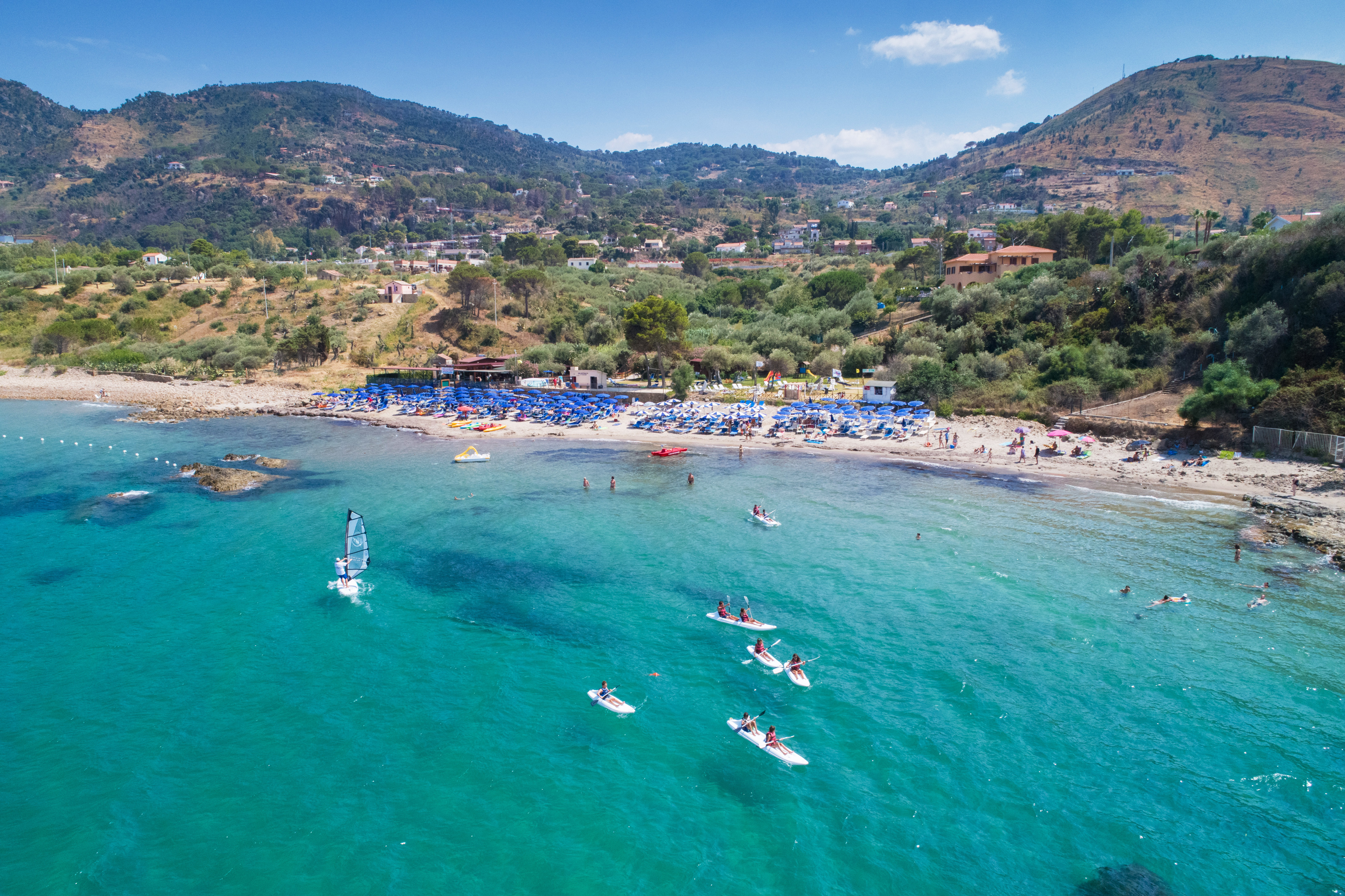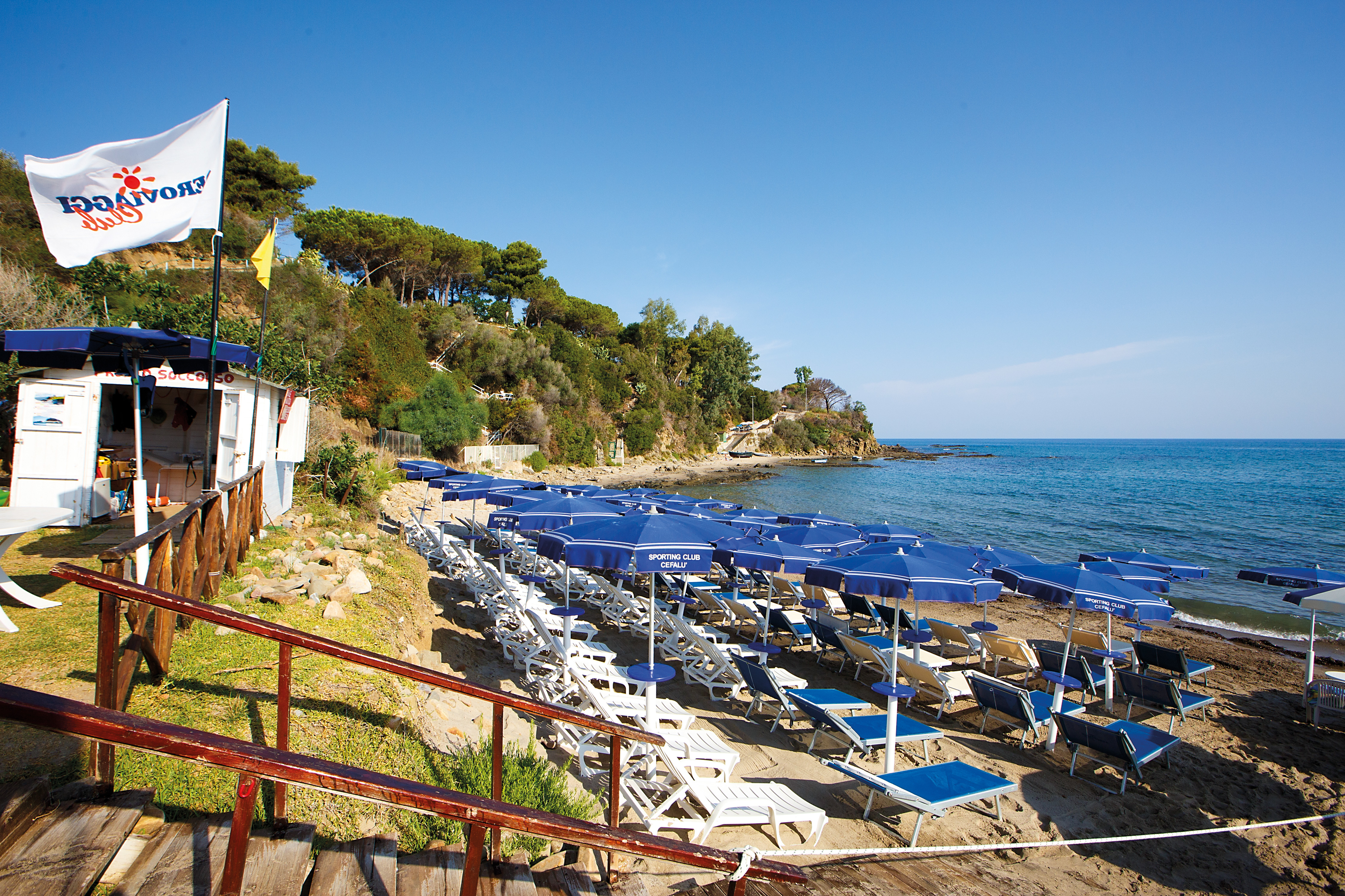 La spiaggia attrezzata, di sabbia, piccoli ciottoli e scogli bassi che consentono un accesso dolce al mare anche per i più piccoli, dista 400 metri dalla struttura. Il servizio spiaggia è a pagamento e prevede con 1 ombrellone e 2 lettini a camera preassegnati secondo disponibilità, presso il lido della struttura. La spiaggia è raggiungibile a piedi attraverso un sentiero di vegetazione mediterranea o tramite servizio navetta (8.00-19.30). Presente un bar in spiaggia.