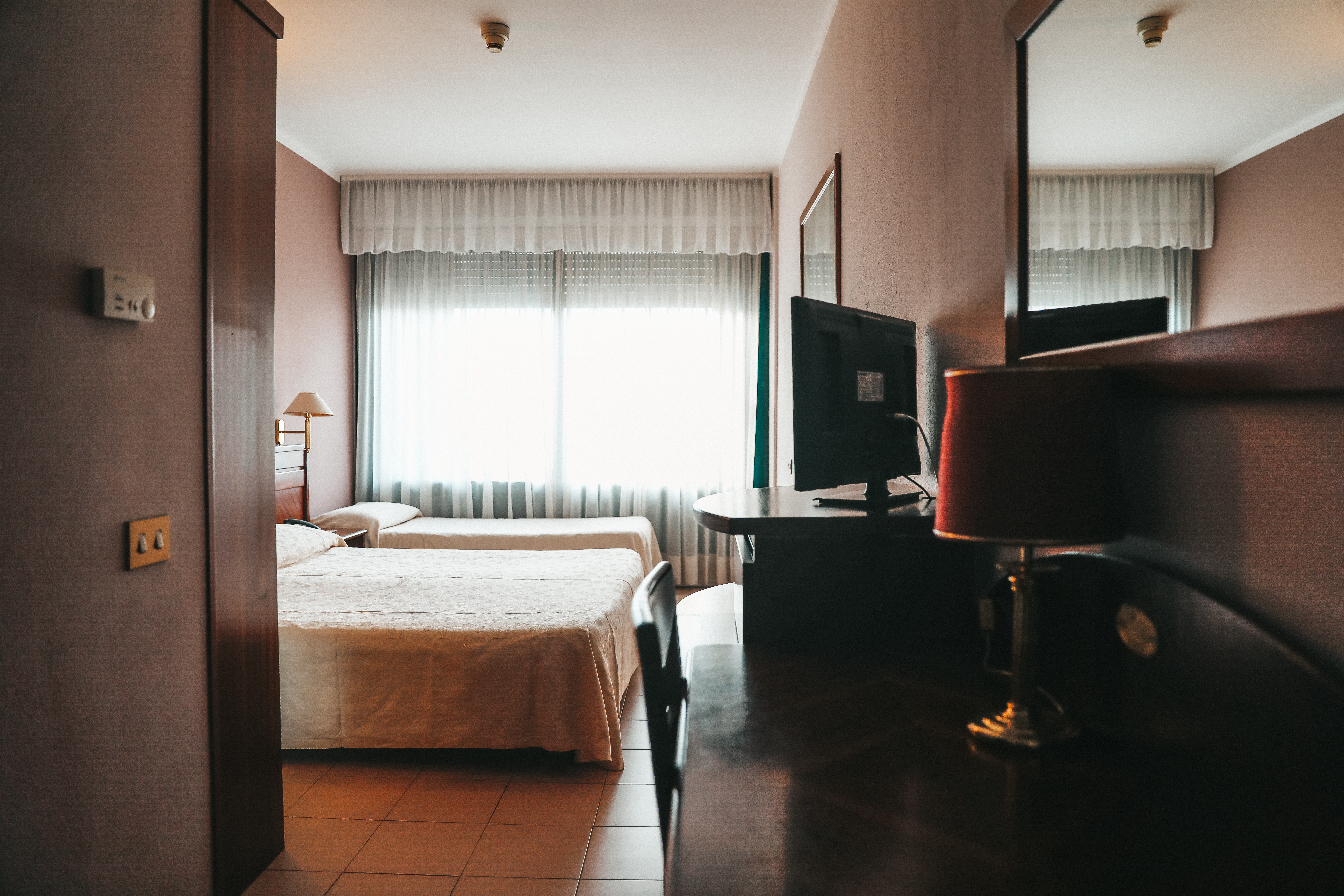 Le camere dispongono di servizi privati box doccia, telefono, minibar (consumazioni a pagamento), asciugacapelli, cassaforte, aria condizionata/riscaldamento, Tv-Sat, connessione Wi-Fi (gratuita), alcune con balcone. Le camere quadruple sono con letto a castello. Sono disponibili in tipologia: