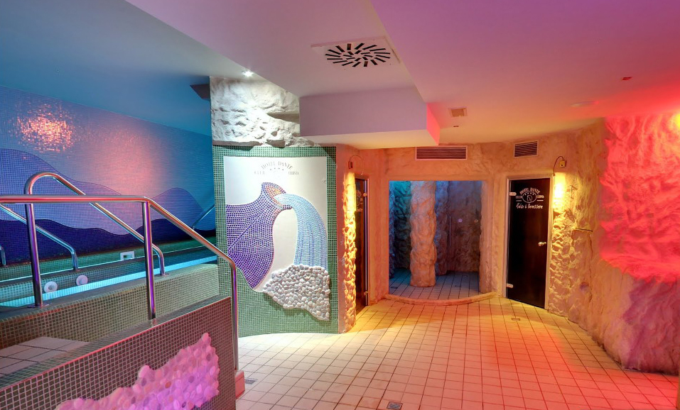 * Accesso di 1 ora al giorno al centro benessere (accesso consentito fino ai 17 anni in fasce orarie prestabilite pomeridiane) con piscina coperta con acqua termale, idromassaggio, sauna, bagno turco, docce emozionali, percorso Kneipp, percorso vascolare e zona relax