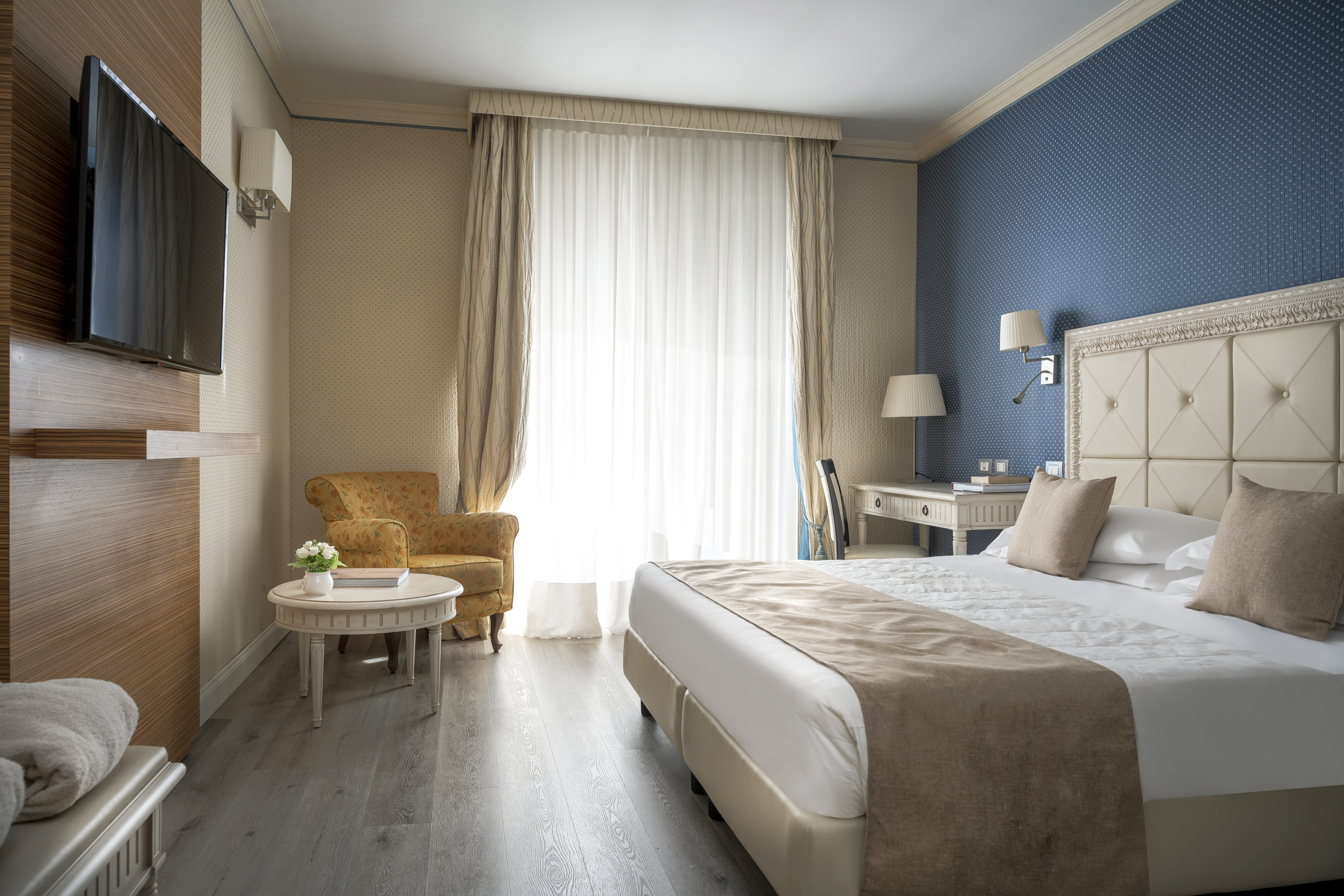 Le camere Classic (occupazione massima 3 adulti) dispongono di servizi privati con box doccia o vasca, asciugacapelli, area condizionata, set di cortesia, cassaforte, minibar (consumazioni a pagamento), telefono, radio, TV Sat, connessione Wi-Fi (gratuita), terrazza o balcone.