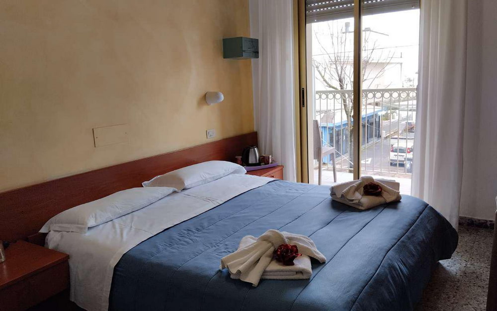 Le camere Standard (occupazione massima 4 adulti) dispongono di servizi privati con box doccia, asciugacapelli, set di cortesia, cassaforte, aria condizionata (gratuita dal 23/06/2026 al 31/08/2026), connessione Wi-Fi. E' previsto il cambio della biancheria da letto 1 volta a settimana e la biancheria da bagno ogni 2 notti, per cambi extra si deve richiedere e pagare in struttura. Le camere quadruple dispongono di letto a castello. Su richiesta al call center: camere singole (supplemento 20 euro al giorno).
