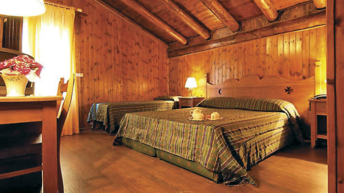 Le camere Standard possono essere situate nel corpo centrale o nella depandance (collegata internamente), sono arredate in stile tipico montano e dispongono di servizi privati con doccia, asciugacapelli, TV, minifrigo, telefono, cassetta di sicurezza. Le camere quadruple possono essere disposte su due livelli oppure con letto a castello. Occupazione massima: 4 adulti. Camera doppia uso singola (su richiesta al call center): riduzione 30% sul prezzo della camera doppia, in tutti i periodi.