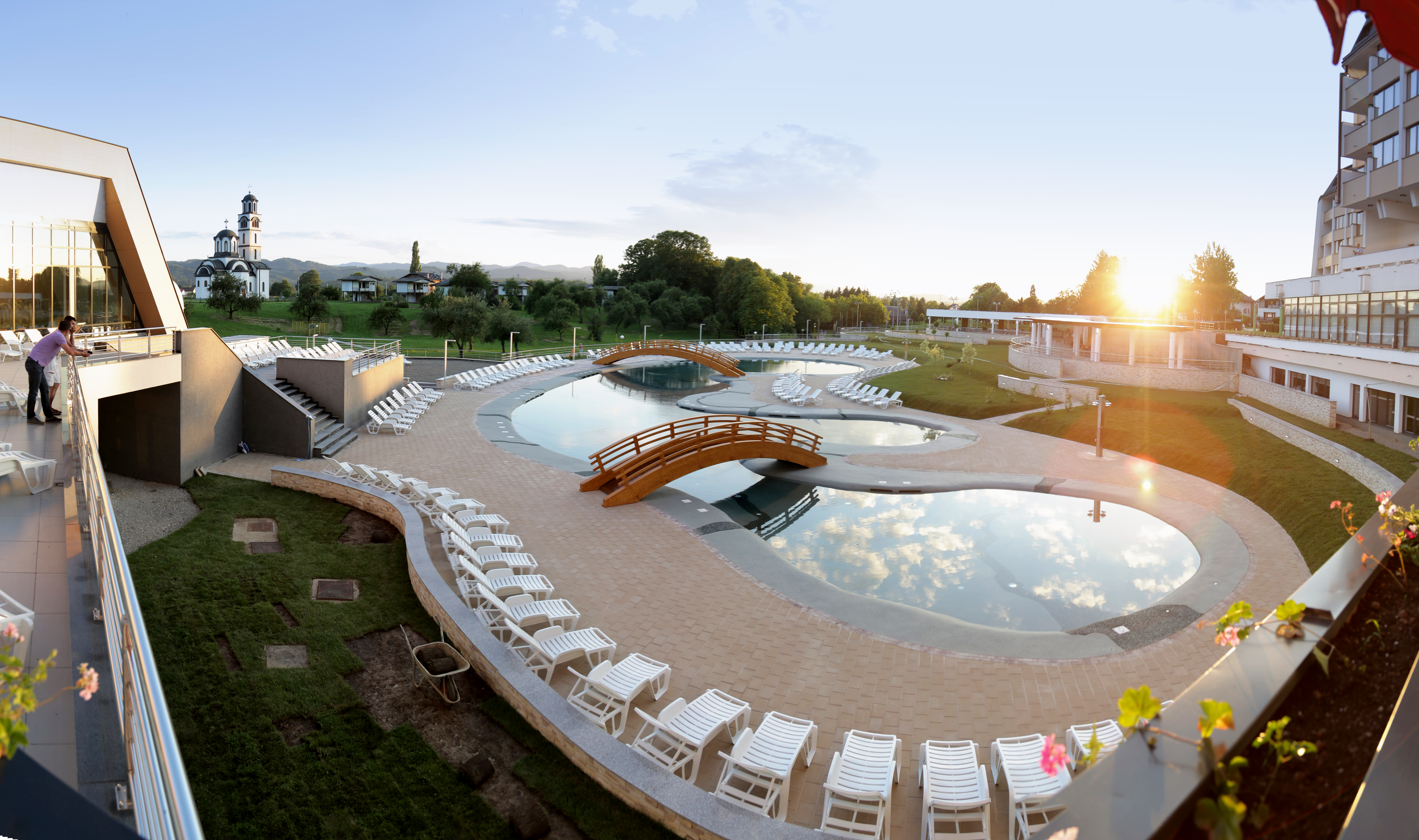 A disposizione degli ospiti reception, ampio ristorante con servizio a buffet (su richiesta menù per intolleranze/allergie alimentari e menù vegani), centro benessere con piscina interna termominerale, saune, massaggi di tutti i tipi e trattamenti cosmetici (Massaggio aromatico Stara Banja e massaggio facciale), piscina esterna con ombrelloni e lettini (aperta a luglio e agosto), centro terapeutico attrezzato e privo di barriere architettoniche situato in un edificio separato a circa 100 metri, al quale è collegato da un corridoio sotterraneo riscaldato nei mesi invernali (terapie proposte: Balneoterapia, Kinesiterapia, Elettroterapia, Magnetoterapia, Ultrasuoni, Termoterapia, Bagni galvanici, Esercizi di respirazione e Ergobicicletta), palestra, parcheggio interno non custodito secondo disponibilità e connessione Wi-Fi in tutta la struttura.