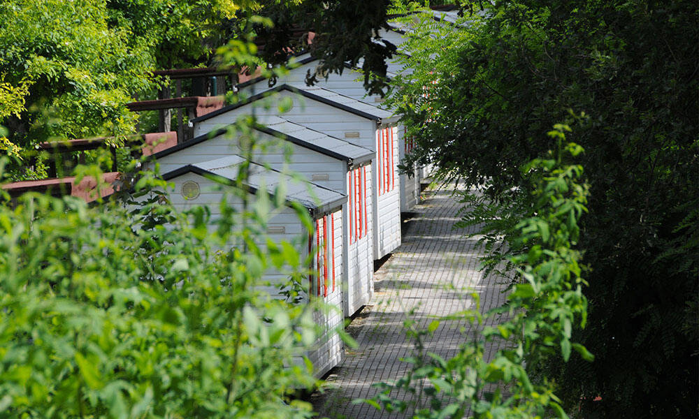 * Casa Mobile Standard Garda-Bimbilandia (20 mq - occupazione massima 4 adulti) situata a ridosso dell'area giochi. Comprende camera matrimoniale, 2° camera con 2 letti singoli, soggiorno con divano letto, angolo cottura con stoviglie e pentolame, lavello e frigo (no congelatore), Tv-sat, servizi privati con box doccia, wc (senza bidet), aria condizionata e veranda coperta. Animali ammessi.