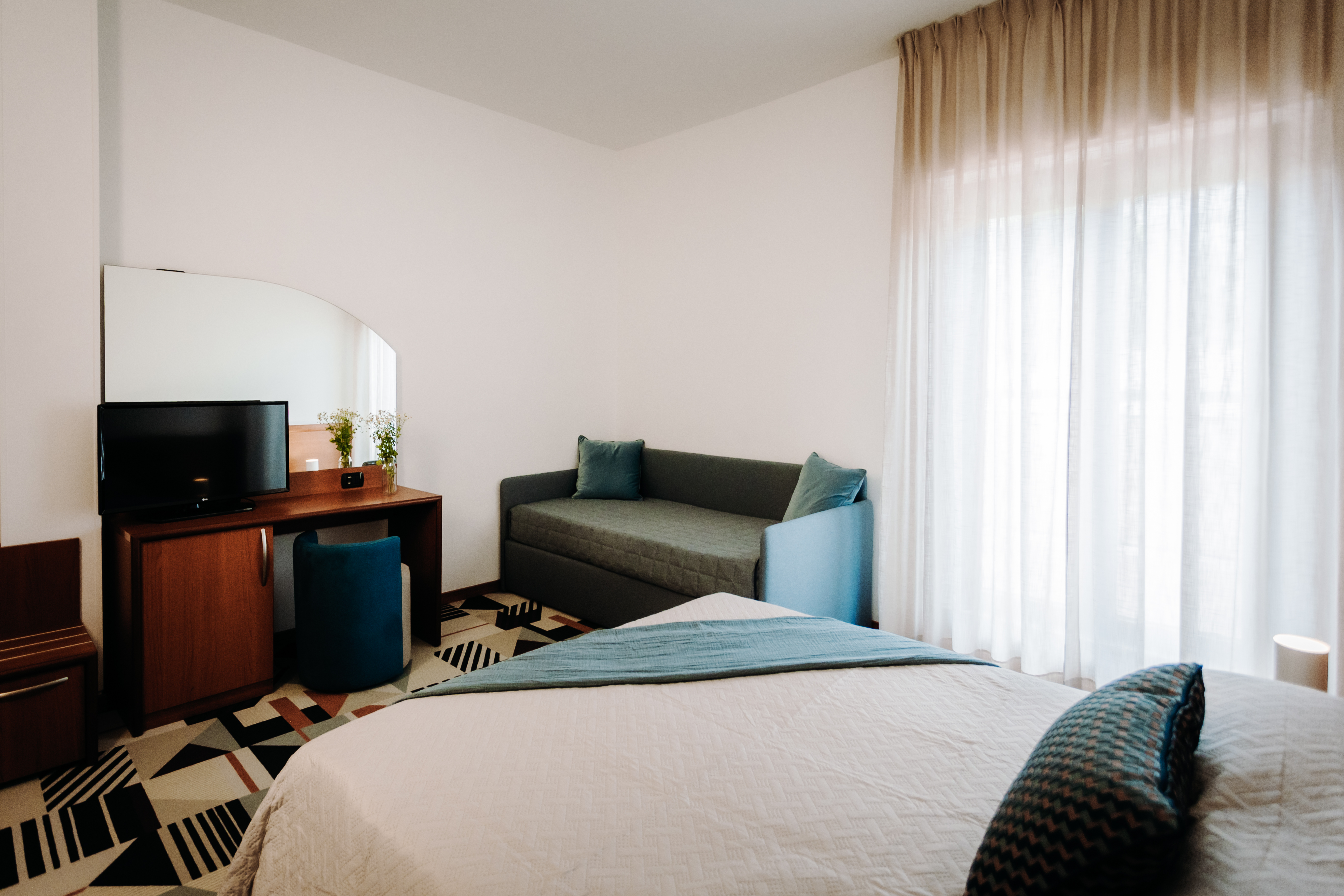 Le camere Standard (17/24 mq - occupazione massima 4 adulti) dispongono di servizi privati con doccia, asciugacapelli, aria condizionata, minibar, TV-Sat, telefono, cassaforte, connessione Wi-Fi (gratuita), balcone.