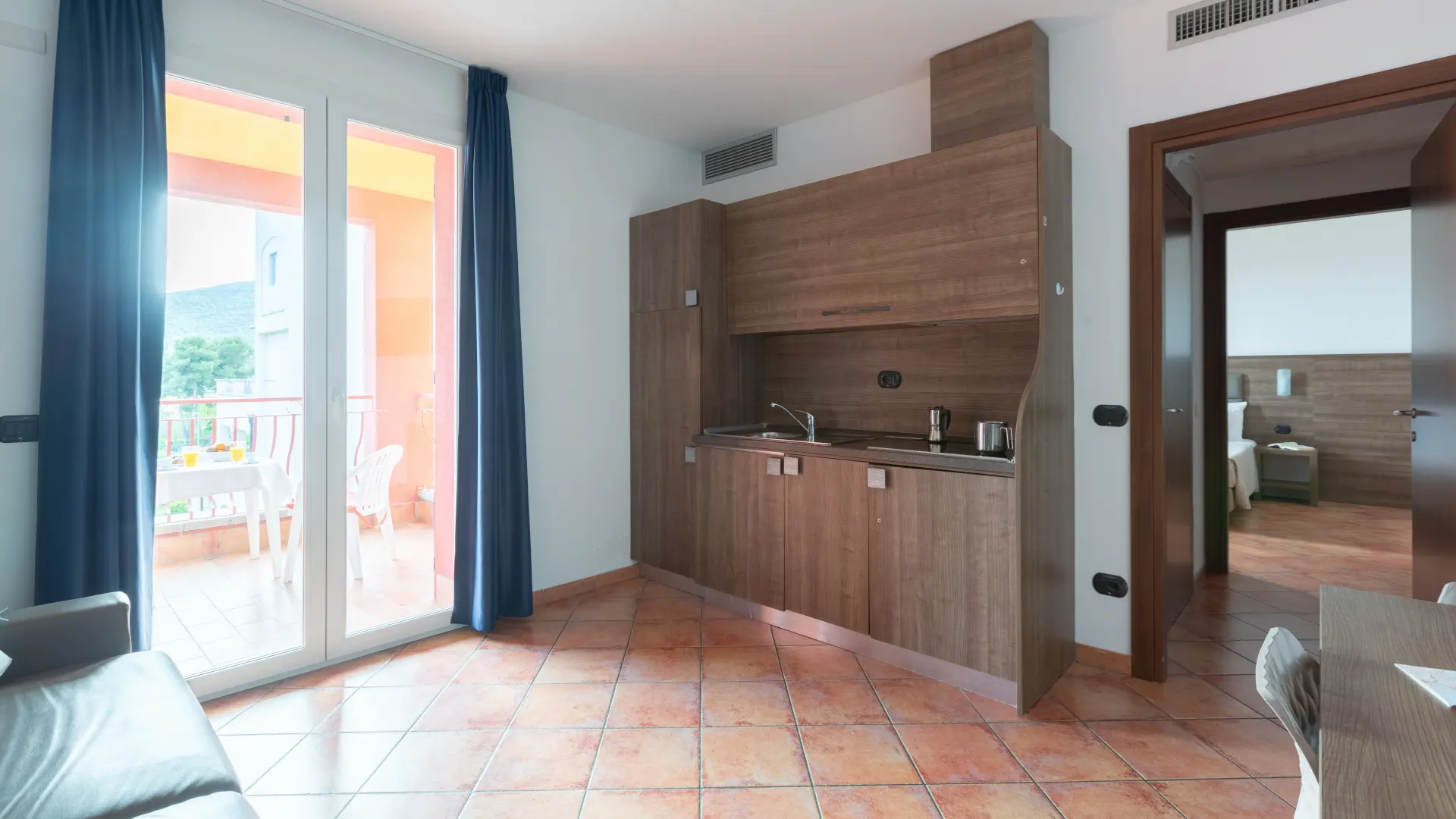 * Superior (21 mq - occupazione massima 3 adulti + 1 infant 0-3 anni non compiuti) con balcone o terrazzo vista piscina; letto a castello