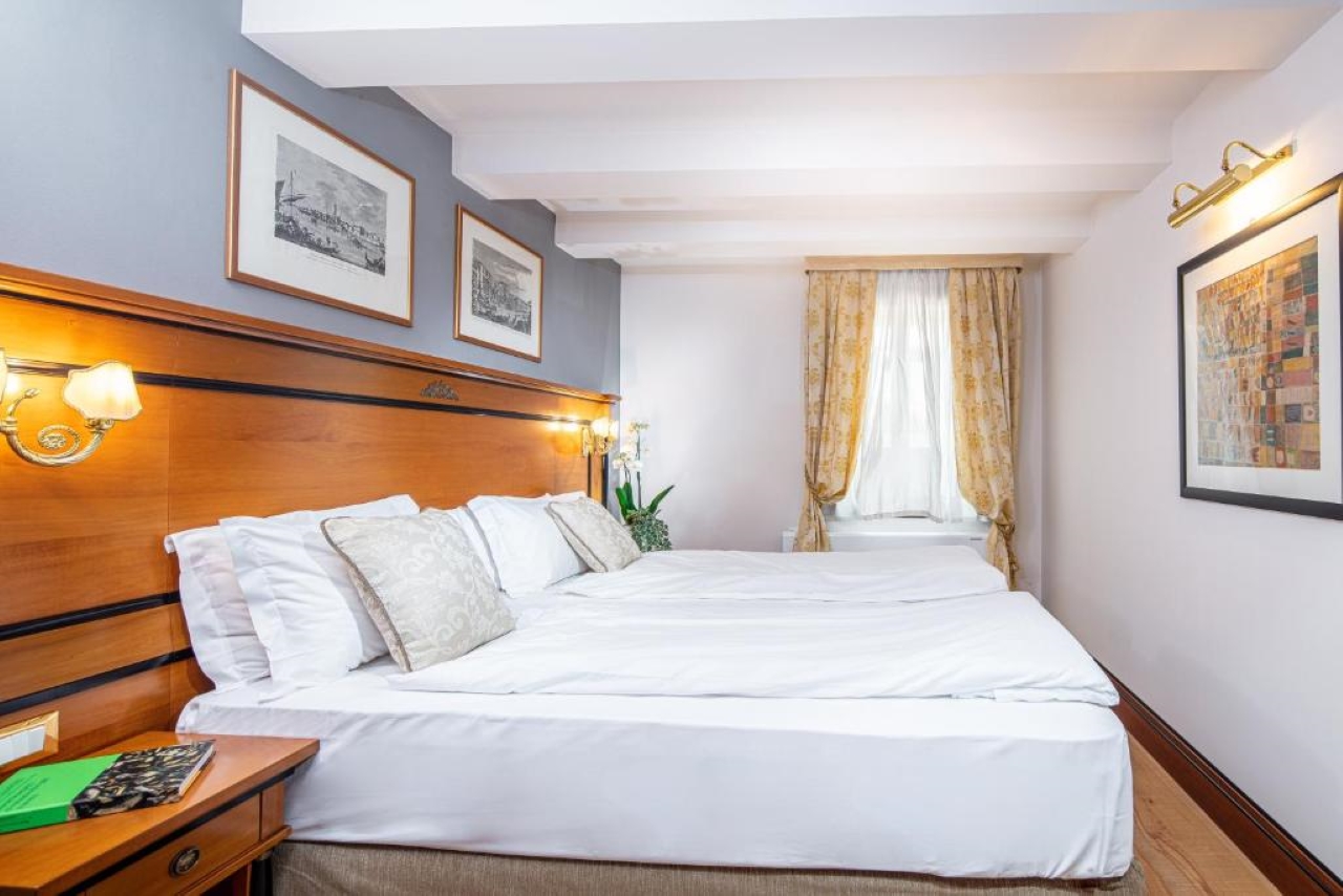 Camera Singola: un solo letto, ma quanta meraviglia! Chi viaggia per lavoro e chi per il gusto di vivere Venezia, nelle nostre camere singole trova un porto sicuro in cui ormeggiare i pensieri e le emozioni. Il proprio posto in cui fermarsi, rilassarsi e ripartire. I bagni sono di recente ristrutturazione, tutti in marmo, spaziosi ed eleganti, dotati di doccia o vasca. Le dimensioni della camera sono di circa 12 metri quadri, più il bagno. Materasso Dormiflex, arredo in stile Biedermeier, pavimenti in parquet Itlas. TV Sat, telefono, minibar, cassaforte, set di cortesia Osmè, aria condizionata, asciugacapelli. Camera Doppia: da poco rinnovate in stile Biedermeier, le camere doppie sono ampie, eleganti, luminose. Si affacciano sulle corti interne così uniche e caratteristiche qui a Venezia. Le camere doppie sono ideali per viaggi di coppia, di lavoro, di divertimento, e hanno tutto lo spazio che cerchi per goderti ogni momento del tuo soggiorno.Ogni camera dispone di un bagno privato in marmo con doccia o vasca da bagno. Su richiesta, possono essere preparate con letto matrimoniale o letti separati. Le dimensioni della camera sono di circa 15 metri quadri, più il bagno. Materasso Dormiflex, arredo in stile Biedermeier, pavimenti in parquet Itlas. Tv Sat, telefono, minibar, cassaforte, set di cortesia Osmè, aria condizionata, asciugacapelli. Camera Deluxe: arredo in stile Biedermeier, parquet, bagno rivestito in marmo e tutto lo spazio che cerchi per riposarti nel centro di Venezia. Scrivania, poltrona e madia, sono complementi che aggiungono confort al tuo soggiorno, e questo, in fondo, è quello che conta davvero. Le dimensioni della camera sono di circa 20 metri quadrati, più il bagno. Materasso Dormiflex, arredo in stile Biedermeier, pavimenti in parquet Itlas. Tv Sat, telefono, minibar, cassaforte, set di cortesia Osmè, aria condizionata, asciugacapelli. Camera Deluxe Vista Canale: apri la finestra ed è subito meraviglia: la vista sul canale riempie gli occhi di stupore e il cuore di piacere. Al mattino presto o alla sera tardi, non importa, la vista sul canale è sempre un incanto. Le camere dispongono di un letto matrimoniale o due letti separati, bagno privato con vasca o doccia all’americana. Le dimensioni della camera sono di circa 18 metri quadrati, più il bagno. Materasso Dormiflex, arredo in stile Biedermeier, pavimenti in parquet Itlas. Tv Sat, telefono, minibar, cassaforte, set di cortesia Osmè, aria condizionata, asciugacapelli.Junior Suite Classic: ampie vetrate lasciano penetrare con dolcezza la luce del giorno. Basta esporsi di un soffio per scoprire i tetti veneziani, i vicoli e le corti interne. L’arredo in stile Biedermeier definisce il mood della junior suite, impreziosita con salotto, poltrone, tavolini e scrivanie. Spazio e luminosità sono i veri protagonisti, creano l’ambiente perfetto per coppie e famiglie, e anche per chi sceglie ricchezza in ogni momento della giornata. Le dimensioni della suite sono di circa 25 metri, più l’ampio bagno privato con vasca o doccia. Su richiesta è possibile richiedere la colazione in camera. Pavimenti in parquet Itlas, materasso Dormiflex. TV Sat, telefono, minibar, cassaforte, set di cortesia Osmè, aria condizionata, asciugacapelli. Junior Suite View: le ampie vetrate accolgono tutta la luce e la bellezza di Venezia. Le finestre si affacciano sul canale, concedendo una vista romantica sulle gondole che passano ad ogni ora del giorno. Alti soffitti, alcuni con travi a vista, elevano lo spazio e trasmettono quel senso di prestigio che tanto cerchiamo in città come questa. Le dimensioni della suite sono di circa 28 metri quadrati, più l’ampio bagno privato con vasca o doccia. Su richiesta è possibile richiedere la colazione in camera. Pavimenti in parquet Itlas, materasso Dormiflex. Alcune camere hanno un soppalco interno. TV Sat, telefono, minibar, cassaforte, set di cortesia Osmè, aria condizionata, asciugacapelli. Junior Suite Santomaso: alti soffitti decorati, lampadari in vetri di Murano, quadri e stampe di pittori internazionali sono dettagli che rimangono nel cuore. Che ti fanno sentire parte di una città devota all’arte e alla bellezza. La vista sul canale è una delizia per gli occhi, e la luce che penetra dalle ampie vetrate svela ad uno ad uno i decori di questa romantica suite. All’interno della junior suite sono presenti opere e copie di litografie dell’artista da cui la camera prende il nome: Giuseppe Santomaso, vincitore della biennale di Venezia nel 1954. Le dimensioni della suite sono di circa 30 metri quadrati, più l’ampio bagno privato con vasca e doccia.Su richiesta è possibile richiedere la colazione in camera. Pavimenti in parquet Itlas, materasso Dormiflex.Tv Sat, telefono, minibar, cassaforte, set di cortesia Osmè, aria condizionata, asciugacapelli. Suite Pizzinato: elegante e spaziosa Suite con vista sul canale, sulle gondole e sulle piccole imbarcazioni che rendono così straordinaria la vita a Venezia. Due grandi ambienti separati, la camera da letto e il salotto, compongono uno spazio ricco di dettagli preziosi. Quadri, stampe, complementi di arredo in stile Biedermeier. Questo è il posto ideale per una fuga romantica o per una famiglia che cerca un posto spazioso, intimo e straordinario. All’interno della suite sono presenti copie di litografie del pittore da cui la camera prende il nome: Armando Pizzinato. Le dimensioni della suite sono di circa 35 metri quadrati, più il bagno dotato di doccia. Su richiesta è possibile richiedere la colazione in camera. Pavimenti in parquet Itlas, materasso Dormiflex. Tv Sat, telefono, minibar, cassaforte, set di cortesia Osmè, aria condizionata, asciugacapelli, bagno dotato di doccia, console playstation. Suite San Marco: la Suite prende il nome dalla vista che è possibile ammirare dalle vetrate, rivolte direttamente verso il Campanile di San Marco e i pinnacoli della Basilica. È come se la Suite stesse guardando diretta
