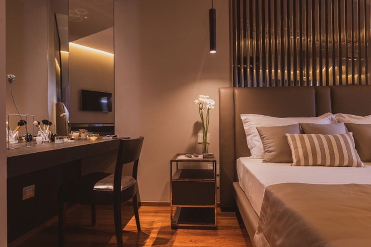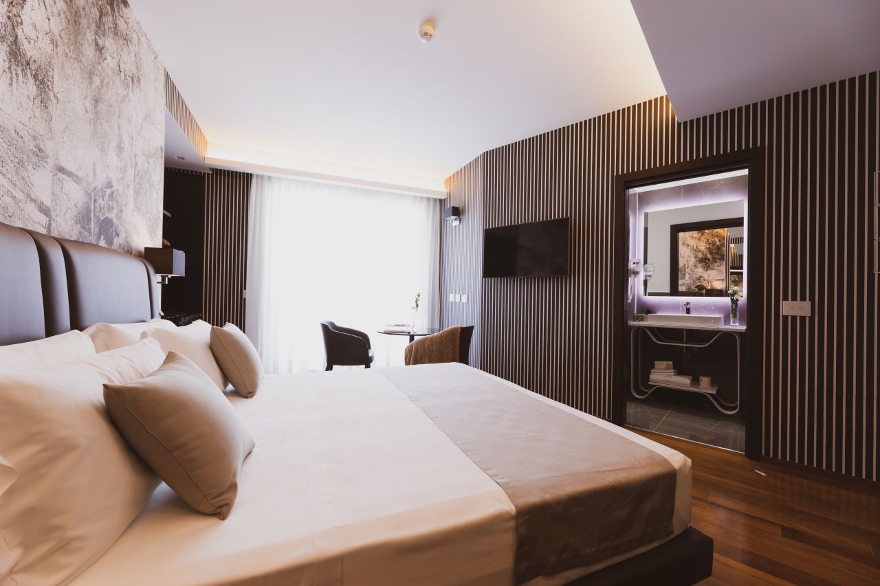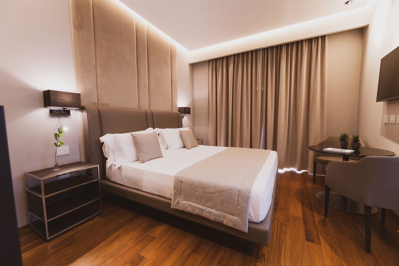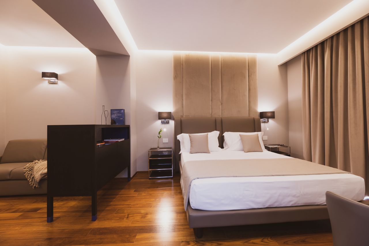 Camera Comfort: 20 mq, funzionali e modernamente arredate, presentano ogni tipo di servizio che possa far sentire l’ospite accolto e accompagnato in un vero e proprio percorso di benessere. Camera Executive: 30 mq, camera matrimoniale/doppia con letti singoli. Camera Deluxe: 25 mq, dagli arredi eleganti e minimali che, grazie anche ai giochi di luce, costruiscono un ambiente dinamico. La vera chicca di questa soluzione esclusiva è l’ampia vasca idromassaggio per due, un angolo di piacere e benessere. Camera Superior: 22mq, con design confortevole e ricercato, rappresentano il perfetto equilibrio tra il piacere di uno spazio ben arredato e la tecnologia domotica. Junior Suite: 30 mq, comprende 1 soggiorno, 1 camera da letto separata e 1 bagno. I colori neutri trasmettono calore e aiutano mente e corpo a rilassarsi, e l’ampio terrazzo arredato è un angolo di pace, ideale per iniziare la giornata degustando privatamente l’eccellente colazione dell’hotel. Suite Spa: 65 mq, ambiente intimo ed esclusivo, arredato con qualità e cura. Gli ospiti potranno disporre di vasca idromassaggio, bagno turco e doccia emozionale con aromaterapia e cromoterapia. Aparthotel: ampi e confortevoli (40/46 mq) ricercati e curati nei dettagli. Sono strutture innovative, che trovano espressione principale nella versatilità, garantendo autonomia e servizi a chi necessita di maggiore libertà. Possono ospitare fino ad un massimo di 4 persone. L’arredamento dal design minimal chic è moderno e davvero funzionale: ogni appartamento ha un accesso indipendente, dispone di domotica a comandi vocali, un piano cottura, TV e cassaforte.La quota comprende