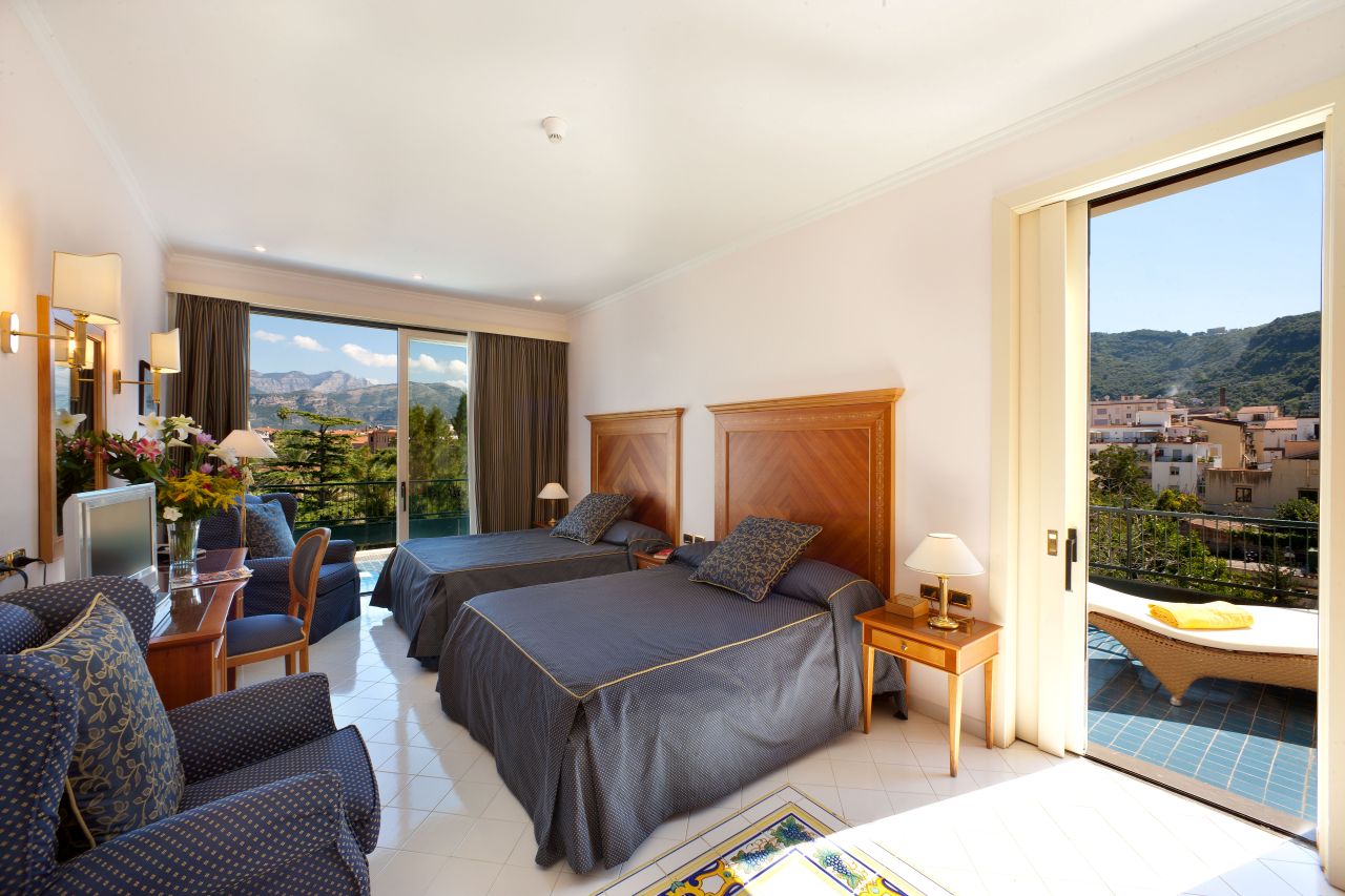 Situato in uno degli angoli più affascinanti della città di Sorrento, a pochi passi dallo storico Chiostro di San Francesco, l’Hotel Continental accoglie i suoi ospiti in un ambiente elegante e raffinato, curato nei minimi dettagli. Le camere Classic, le Junior Suite e le Suite offrono comfort moderni in una cornice dal fascino intramontabile, ideale per una vacanza rilassante o un’occasione speciale. Gli ampi saloni, l’area bar e la piscina immersa nel verde degli agrumi creano spazi perfetti per il relax, mentre la zona Acqua Relax, con vasche idromassaggio e trattamenti personalizzati, offre un’esperienza rigenerante per corpo e mente. Fiore all’occhiello della struttura è la Terrazza Vittoria, un vero angolo di paradiso panoramico al quinto piano, da cui godere di una vista mozzafiato sul Golfo di Napoli e sulla Costiera Sorrentina. Ogni mattina, nella scenografica “Sala degli Specchi”, viene servita una ricca colazione a buffet, con prodotti freschi, specialità italiane dolci e salate, un angolo dedicato al senza glutine e la possibilità di colazione in camera (su richiesta e con supplemento). A disposizione degli ospiti anche un centro fitness Technogym (accesso gratuito), una piscina esterna con area solarium, e un comodo accesso al Beach Club “Leonelli”, raggiungibile tramite ascensore privato e prenotabile direttamente (servizio stagionale e a pagamento). L’hotel dispone inoltre di colonnine di ricarica rapida per auto elettriche, oltre ad un internet point attivo 24 ore su 24 e connessione Wi-Fi gratuita in tutta la struttura. All’Hotel Continental l’arte dell’ospitalità si fonde con la tradizione sorrentina, regalando a ogni ospite un soggiorno indimenticabile in una delle destinazioni più affascinanti del Mediterraneo.Sistemazioni
