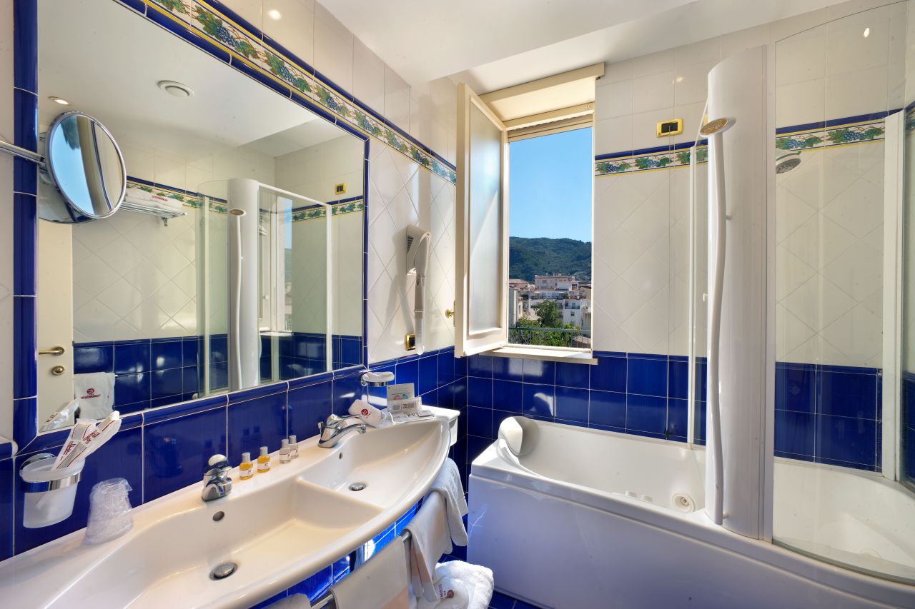 Le camere dell’Hotel Continental di Sorrento rappresentano l’incontro perfetto tra eleganza, tradizione e comfort moderno. Arredate con gusto secondo lo stile classico della tradizione sorrentina, ogni stanza è impreziosita da pavimenti in maiolica di Vietri, tessuti pregiati e dettagli di design che richiamano i colori e la luce del Mediterraneo. Disponibili in diverse tipologie, dalle camere Classic alle lussuose Suite, tutte le sistemazioni offrono ambienti spaziosi e luminosi, dotati di balcone e vista sul mare, sui giardini o sulla città. Le camere sono pensate per accogliere sia coppie in cerca di romanticismo che famiglie desiderose di relax, garantendo sempre un soggiorno confortevole e raffinato. Tra i principali comfort: letti matrimoniali o singoli con scelta di cuscini “a cinque stelle”, TV LCD con canali Sky, controllo elettronico di luci e clima, minibar, biancheria personalizzata e una linea cortesia di alta qualità. I bagni, rifiniti in maiolica vietrese, sono dotati di docce moderne o vasche idromassaggio Jacuzzi, a seconda della tipologia. Disponibili su richiesta culle e camere comunicanti per famiglie. Alcune suite offrono anche aree soggiorno, postazioni lavoro e dotazioni wellness come panche Technogym e jacuzzi private. Le camere dell’Hotel Continental non sono solo luoghi dove riposare, ma spazi pensati per vivere un’esperienza di benessere, bellezza e autenticità nel cuore di Sorrento.Amici a 4 Zampe