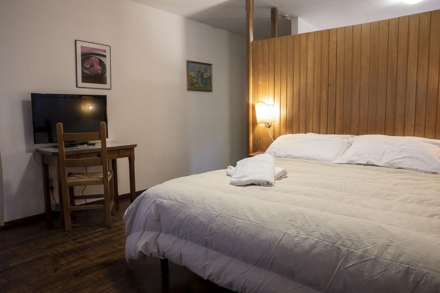Le camere standard sono arredate in stile montano e minimal e dispongono di servizi privati con doccia, camera da letto, Tv a schermo piatto, servizio di pulizia giornaliero. Le camere superior, recentemente rinnovate in stile moderno e minimalist, sono dotate ugualmente di flat TV, bagno privato con doccia con attenzione ad una moderna funzionalità.Amici a 4 Zampe