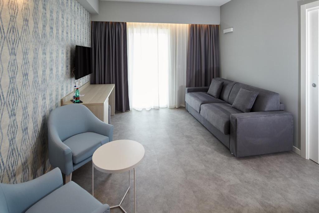Le 324 camere disponibili sono progettate per offrire il massimo comfort, qualunque siano le esigenze degli ospiti. Le camere Standard presentano finiture in legno chiaro e delicati accenti grigio-blu, che creano un'atmosfera serena ed accogliente. Le camere Superior, luminose e ariose, sono distribuite su tutti i piani dell'hotel e dispongono di un ampio balcone o di una terrazza accogliente. Le Junior Suite sono alloggi eleganti e arredati con cura. Offrono un'accogliente zona living con un comodo divano letto, oltre a una camera da letto separata con un bagno moderno e raffinato.Spiaggia