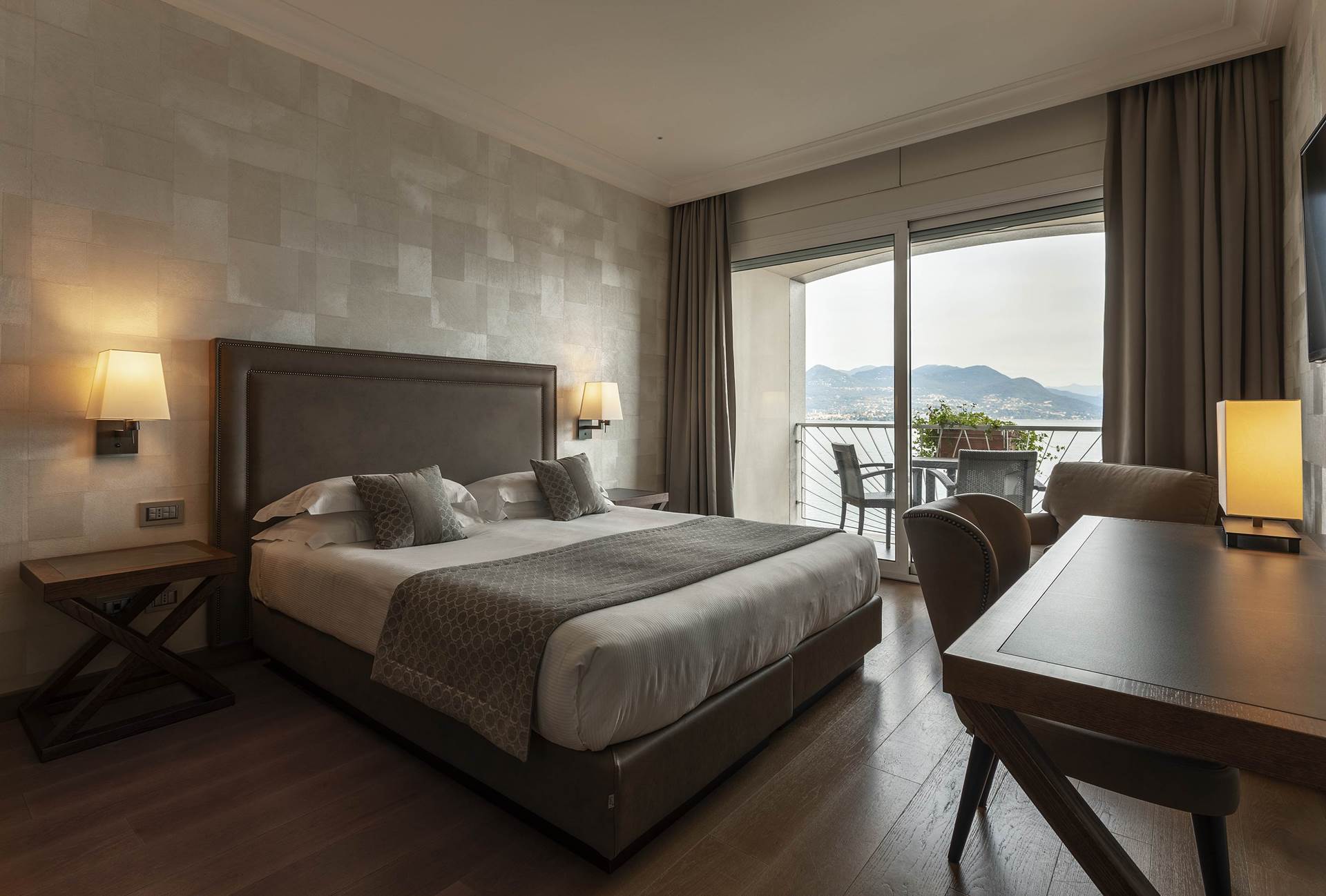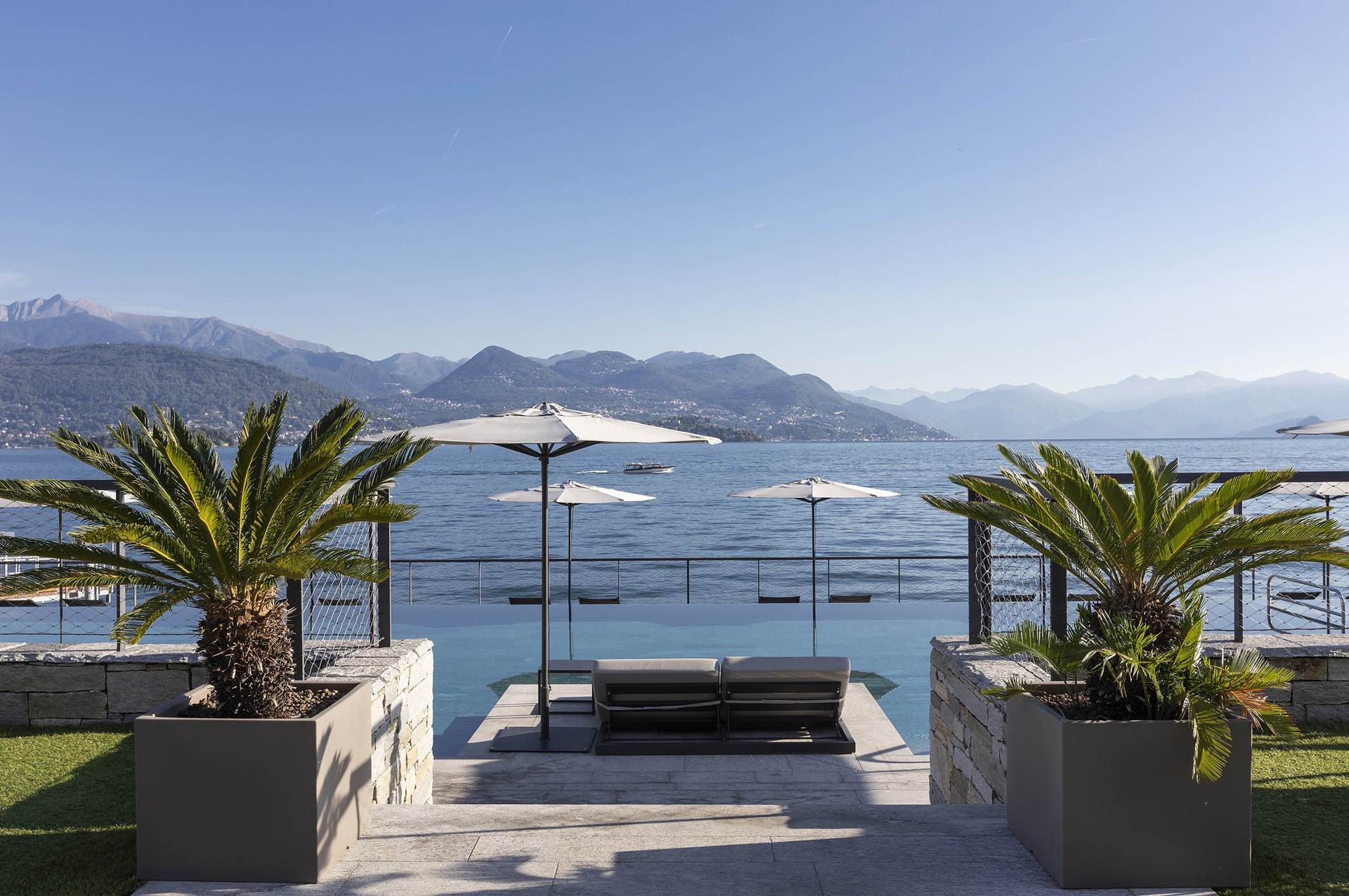 L’Hotel La Palma è un elegante hotel a 4 stelle situato direttamente sul lungolago di Stresa, affacciato sul suggestivo Lago Maggiore. È una struttura molto apprezzata per la posizione panoramica, il design contemporaneo e i servizi di alto livello. L’hotel si distingue per un’atmosfera moderna e rilassante, pensata per valorizzare il paesaggio circostante. Gli spazi sono progettati per integrare interno ed esterno, con grandi vetrate e terrazze che offrono viste spettacolari sul lago e sulle Isole Borromee L’hotel mette a disposizione una piscina a sfioro fronte lago sia per adulti che per bimbi, con zone idromassaggio, solarium vista lago e pool bar con servizio aperitivi e snack Skybar all'ultimo piano sulla terrazza con meravigliosa vista del lago e delle Isole Borromee, con possibilità di lunch, snacks e aperitivi Spa con idromassaggio, sauna, doccia scozzese ed emozionale, stanza del sale e relax, cabina trattamenti vari. Sala fitness con vista all'esternoPosizione