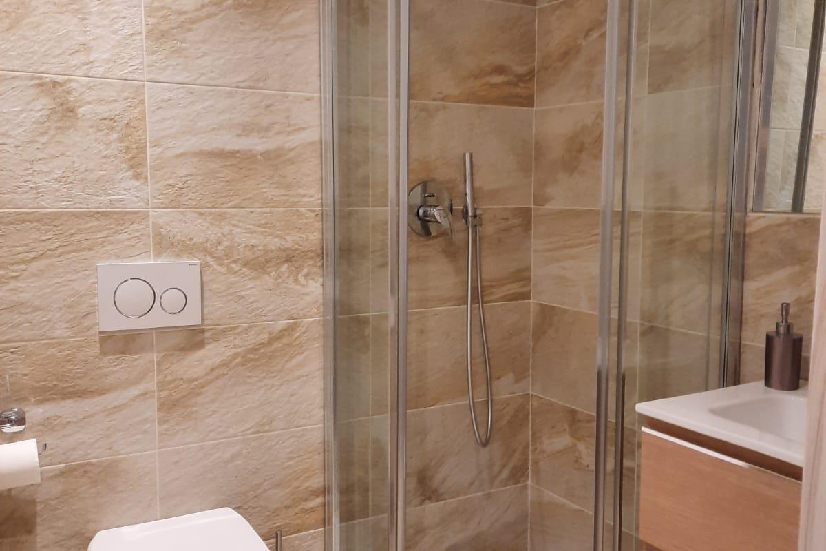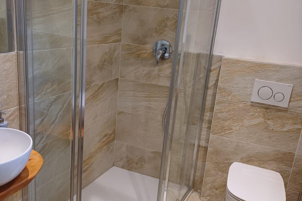 Camere da letto matrimoniale con parquet , bagno con sanitari e ampie docce.
