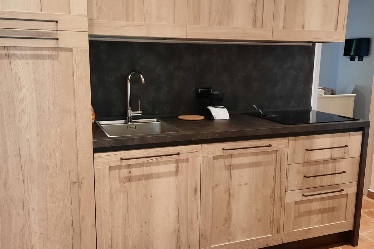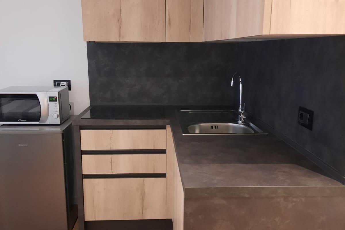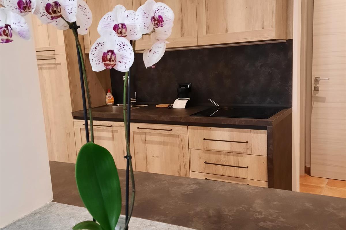 Cucina completamente attrezzata con inclusi piano induzione, lavastoviglie, lavatrice, macchinetta caffè...