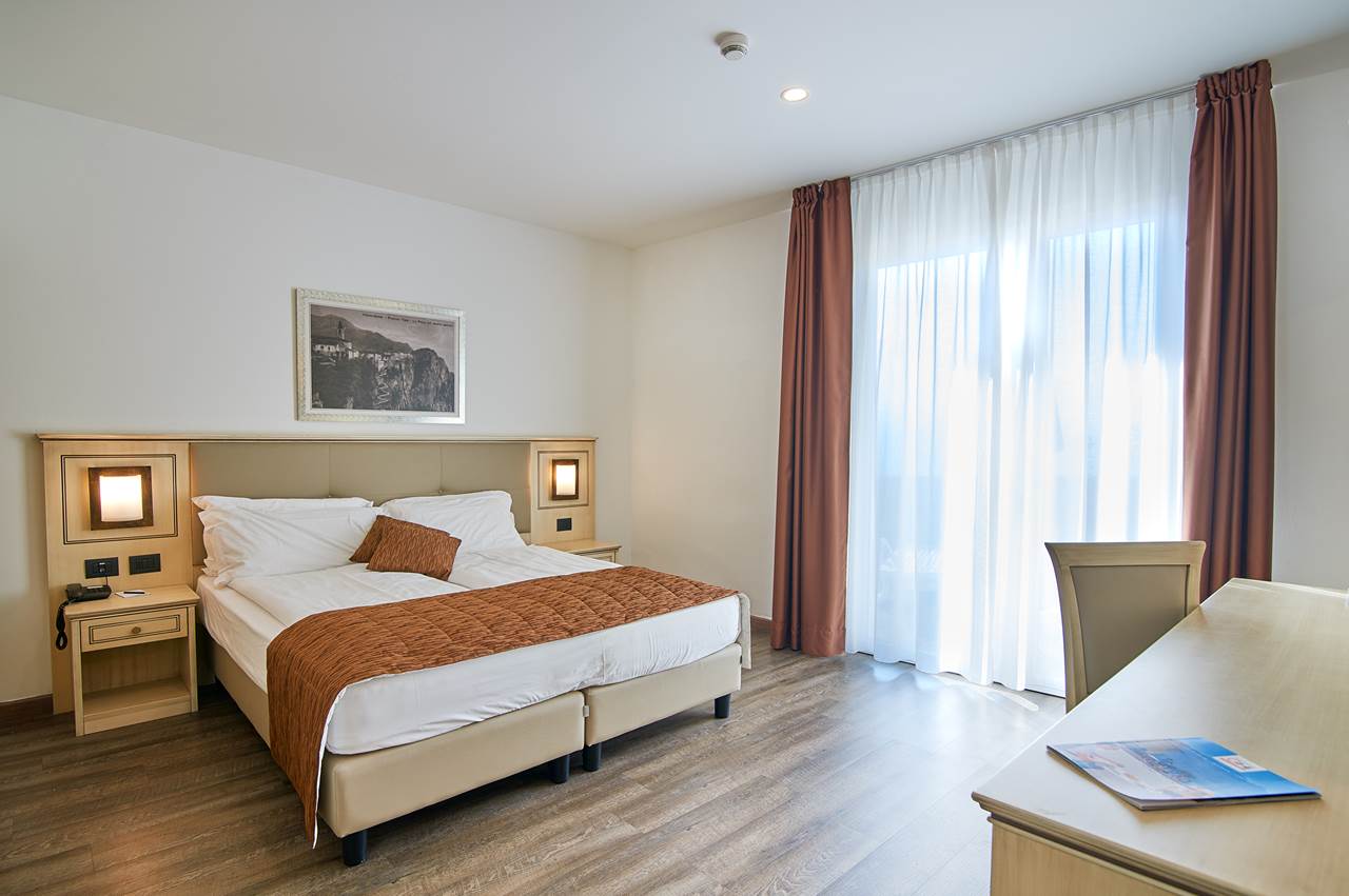 V3 Camera doppia con possibilità di 3°letto Classic con vista lago laterale, 18-20 mq. Dispongono doccia, phon, telefono, TV SAT, safe, frigobar, aria condizionata (da metà maggio a metà settembre), Wi-fi, balcone e vista lago laterale. P3 Camera doppia con possibilità di 3° letto Standard, 16-18 mq. Dispongono doccia, phon, telefono, TV SAT, safe, frigobar, aria condizionata (da metà maggio a metà settembre), Wi-fi, balcone e vista lago laterale. No courtesy set, dispencer per sapone e bagnodocciaLa quota comprende