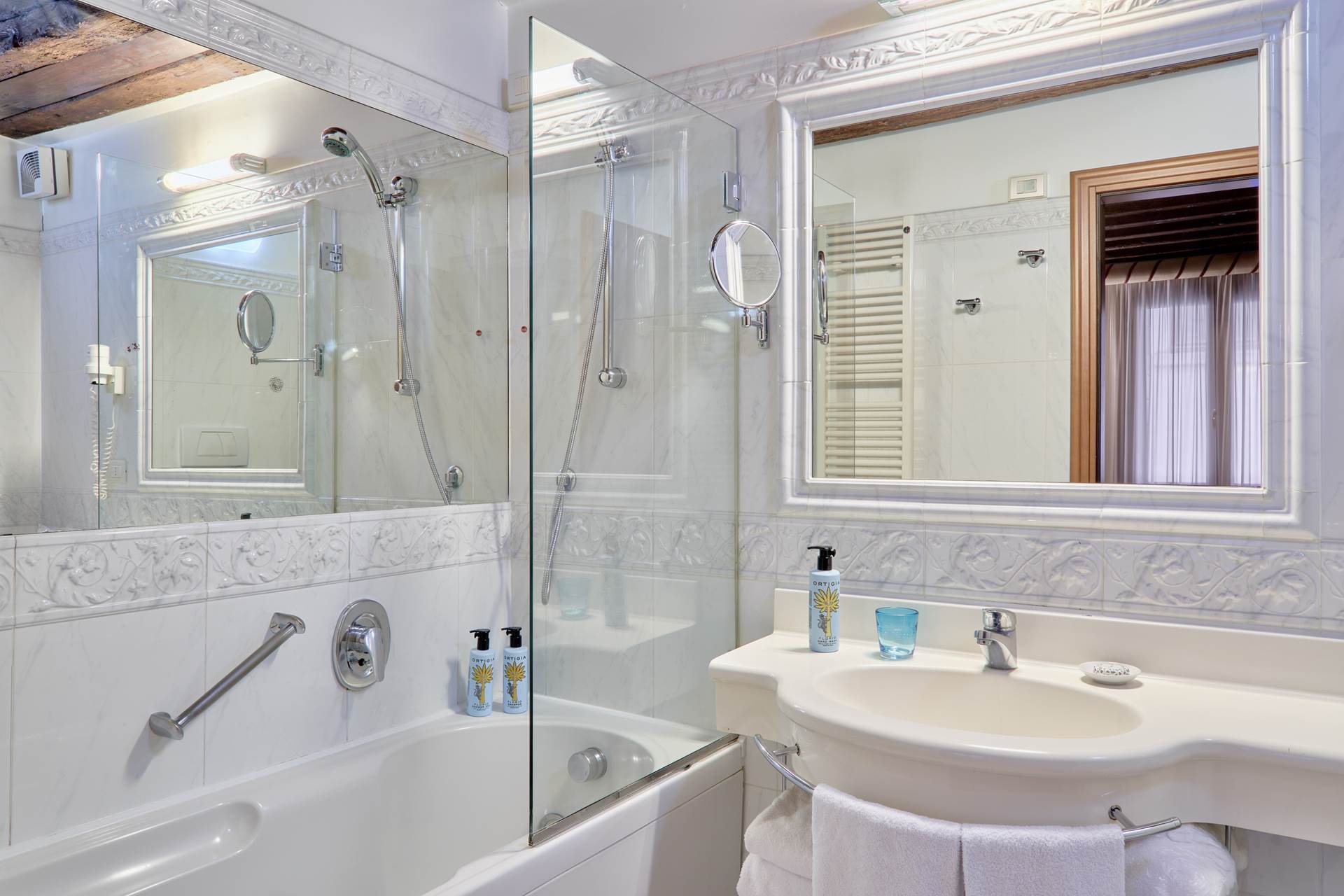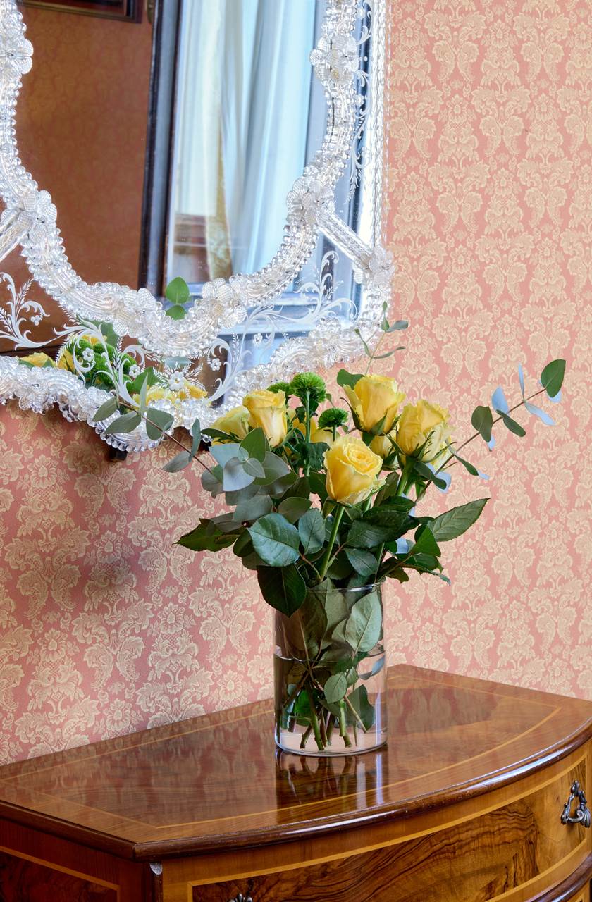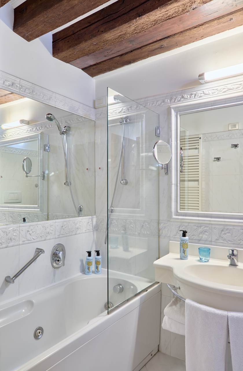 Inclusa nel prezzo la colazione continentale (dolce: marmellata, brioches, miele, dolci, biscotti, torte del giorno, fette biscottate, pane). Con un supplemento (al momento della prenotazione), è possibile prenotare la Full Breakfast che comprende tutto ciò che include la colazione continentale più una selezione di ricette salate. La colazione è sempre servita à la carte. VALET PARKING C/O SANTA CHIARA: da prenotare in anticipo e pagare direttamente nella struttura ospitante. Il cliente deve comunicare in anticipo orario indicativo di arrivo e numero di cellulare dove essere contattato.  PARCHEGGIO C/O SANTA CHIARA: Da pagare in hotel. € 90,00/giorno da gennaio a marzo e da ottobre a dicembre. // € 110,00/giorno da aprile a settembre.          In alternativa parcheggio c/o Garage San Marco in Piazzale Roma (a pagamento), convenzionato con l'hotel Animali ammessi, su richiesta. Max. 40cm. Gratuiti. Cambio lenzuola e asciugamani giornaliero. Carte di credito accettate: American Express, Visa, Carta Si, Diners, Mastercard, Bancomat/Maestro. Culla disponibile per bambini fino a 2 anni, gratuita. Da indicare nella prenotazione. Check in dalle 14:00 Check out entro le ore 12:00 Reception 24h Tassa di soggiorno € 4.50 per persona al giorno, da pagare in loco. Importo soggetto a variazione.