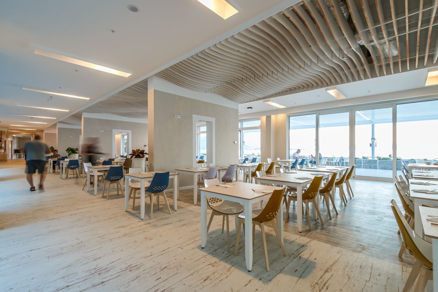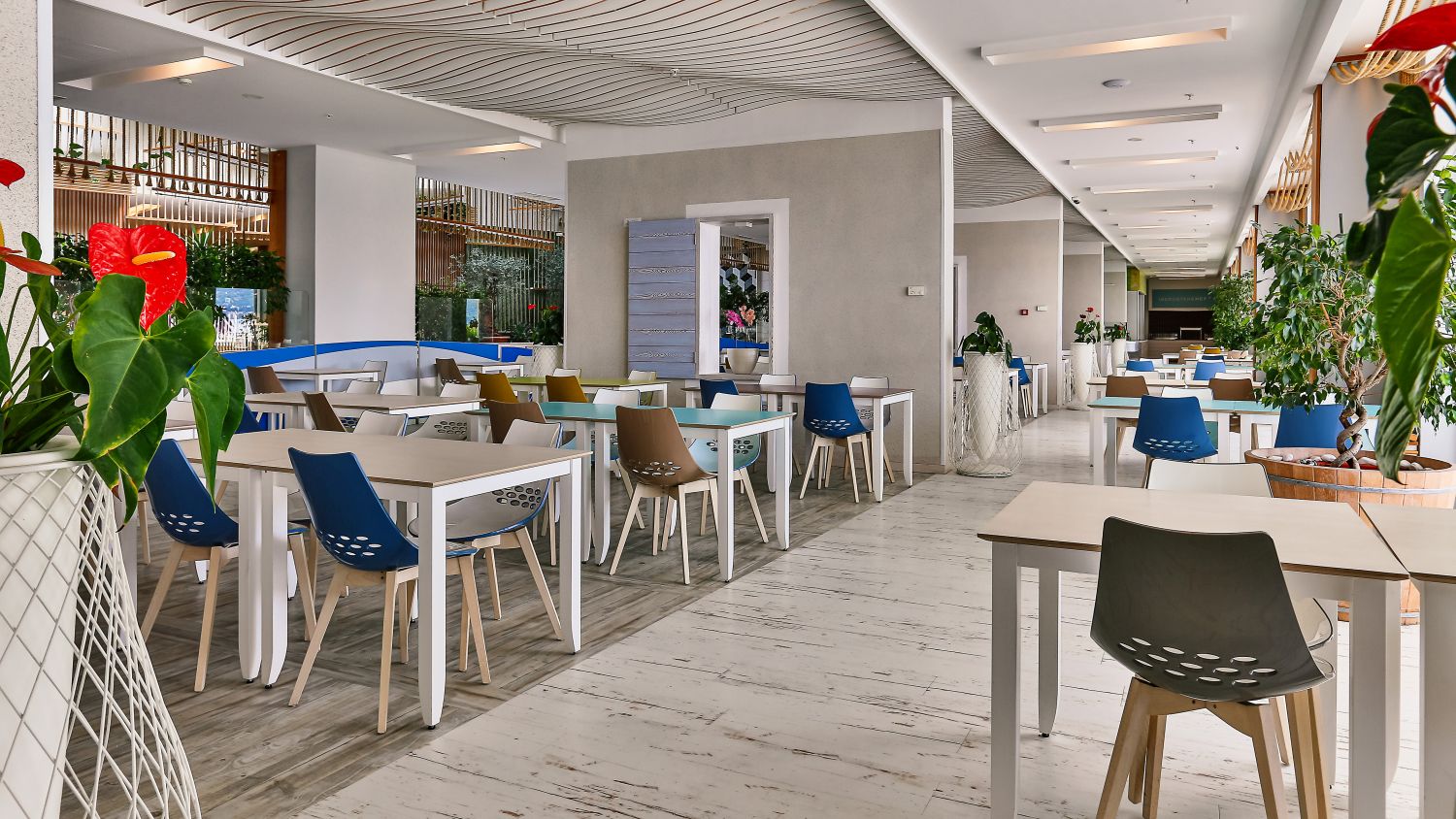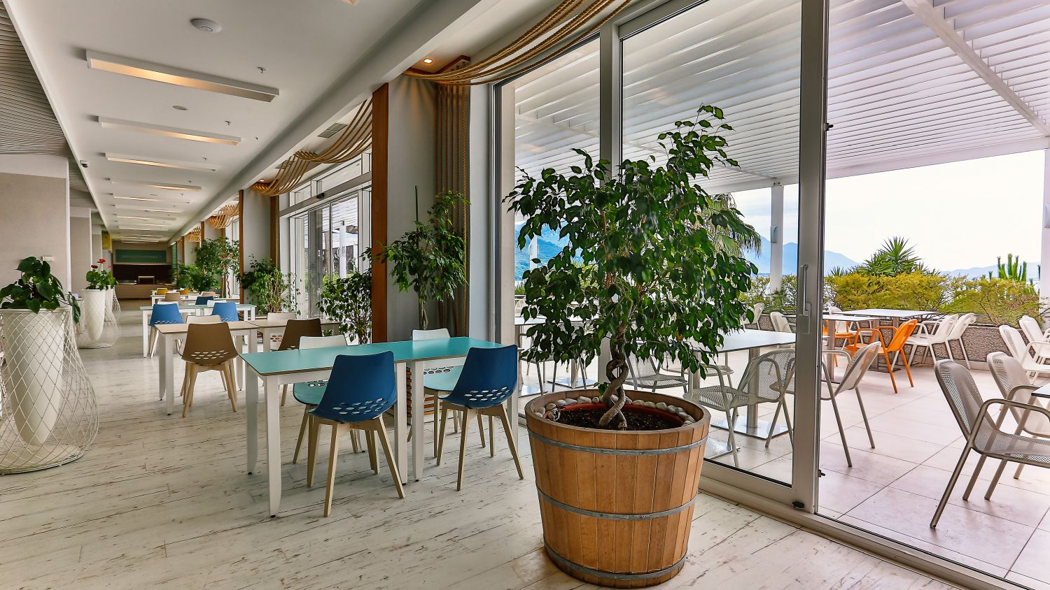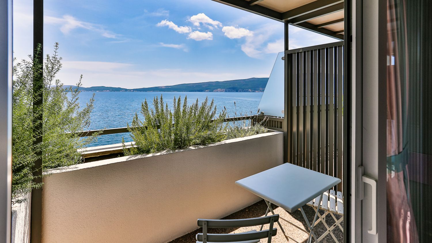 L'hotel dispone di 282 camere confortevoli e prestigiose. Tutte le camere sono climatizzate e dotate di bagno privato, elegante soggiorno, telefono con linea diretta, Wi-Fi, TV satellitare, cassaforte e minibar. Un'atmosfera speciale è creata dalle ampie terrazze, dalle quali si può godere di una vista indimenticabile sulla baia o sulle cime delle montagne circostanti, e respirare la freschezza e i profumi delle erbe di montagna. Camera matrimoniale con vista montagna: letto matrimoniale (160x200 cm) o due letti singoli (90x200 cm), bagno con doccia, asciugacapelli, aria condizionata, telefono, TV satellitare, Wi-Fi, mini frigo, cassaforte, terrazza con tavolo e sedia. 22 mq, disponibile su tutti i piani. Camera matrimoniale con vista laterale sul mare: letto matrimoniale (160x200 cm) o due letti singoli (90x200 cm) e divano letto, bagno con doccia, asciugacapelli, aria condizionata, telefono, TV satellitare, Wi-Fi, mini frigo, cassaforte, terrazza con tavolo e sedia. 28,50 mq, situata dal 1° al 6° piano. Camera matrimoniale con vista mare: letto matrimoniale (180x200 cm) o due letti singoli (90x200 cm) e divano letto, bagno con doccia, asciugacapelli, aria condizionata, telefono, TV satellitare, Wi-Fi, mini frigo, cassaforte, terrazza con tavolo e sedia. 28,50 mq, situata tra il 1° e il 2° piano. Camera matrimoniale con vista mare, posizione privilegiata: letto matrimoniale (180x200 cm) o due letti singoli (90x200 cm) e divano letto, bagno con doccia, asciugacapelli, aria condizionata, telefono, TV satellitare, Wi-Fi, mini frigo, cassaforte, terrazza con tavolo e sedia. 28,50 mq, situata al 3° e 4° piano. Camera familiare: letto matrimoniale (160x200 cm) e letto a castello, bagno con doccia, asciugacapelli, aria condizionata, telefono, TV satellitare, Wi-Fi, mini frigo, cassaforte, terrazza con tavolo e sedia. 28,50 mq, situata al 1° o 2° piano, con vista sull'atrio. Camera familiare con vista laterale sul mare: letto matrimoniale (160x200 cm) e divano letto trasformabile in letto a castello, bagno con doccia, asciugacapelli, aria condizionata, telefono, TV satellitare, Wi-Fi, mini frigo, cassaforte, terrazza con tavolo e sedie. 43 mq, situata dal 1° al 6° piano.Spiaggia