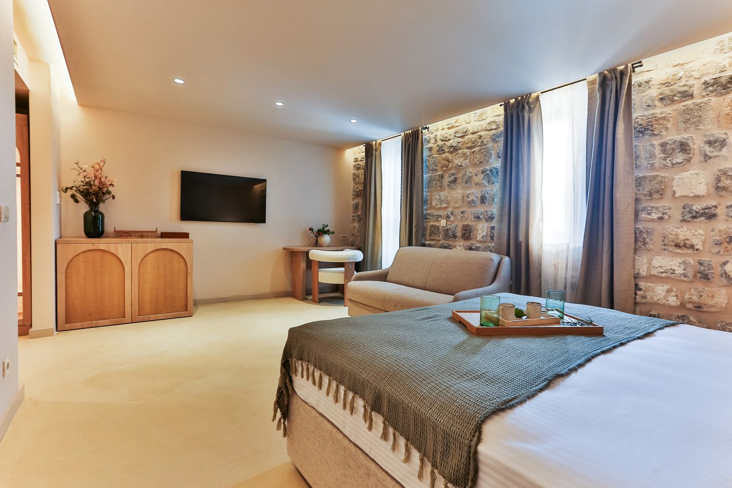 Il Boutique Hotel Ruzmarin Garden & Spa offre unità climatizzate con scrivania, macchina da caffè, minibar, cassaforte, TV a schermo piatto e bagno privato con doccia. Tutte le unità includono un bagno privato con set di cortesia, mentre alcune unità dispongono di balcone e altre offrono viste sulla piscina.Amici a 4 Zampe