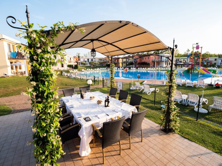 Servizi Facoltativi da Pagare alla Prenotazione: supplemento di pernottamento e prima colazione (da 0 a 2 anni GRATIS, da 3 a 13 anni € 6 al giorno per persona, da 14 anni e adulti € 10 al giorno per persona; include colazione a buffet); supplemento di mezza pensione (da 0 a 2 anni GRATIS, da 3 a 13 anni € 12 al giorno per persona, da 14 anni e adulti € 22 al giorno per persona; include colazione a buffet e cena a buffet o pizza più dessert).