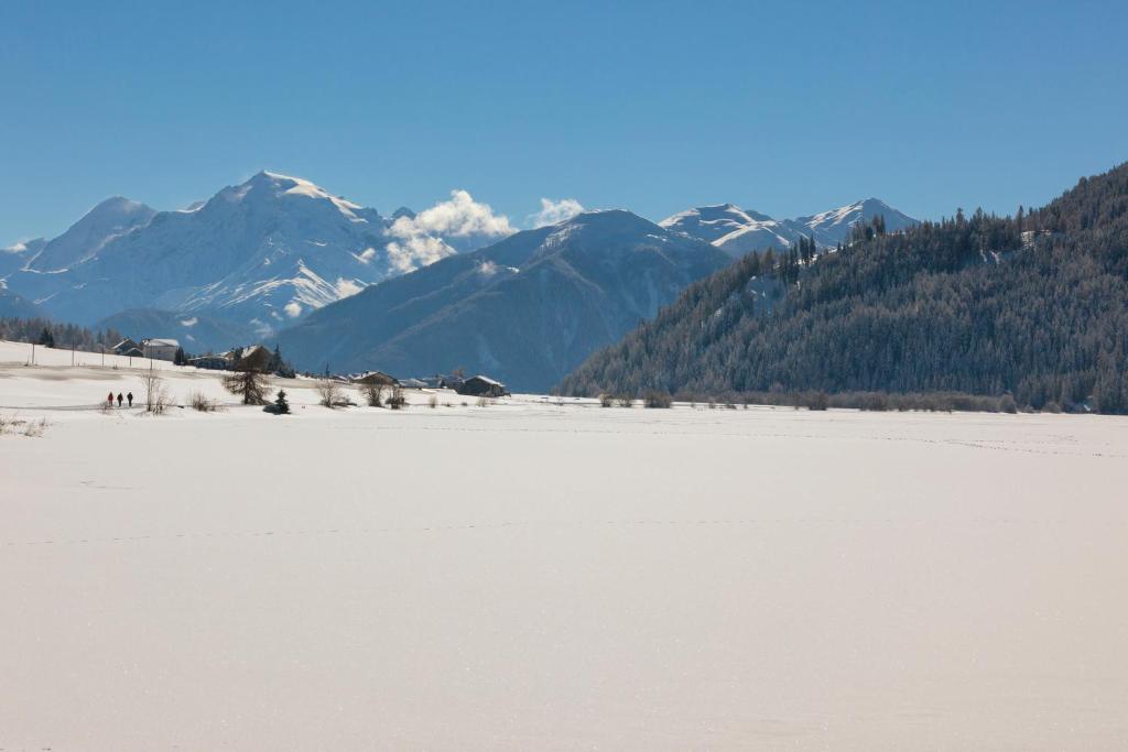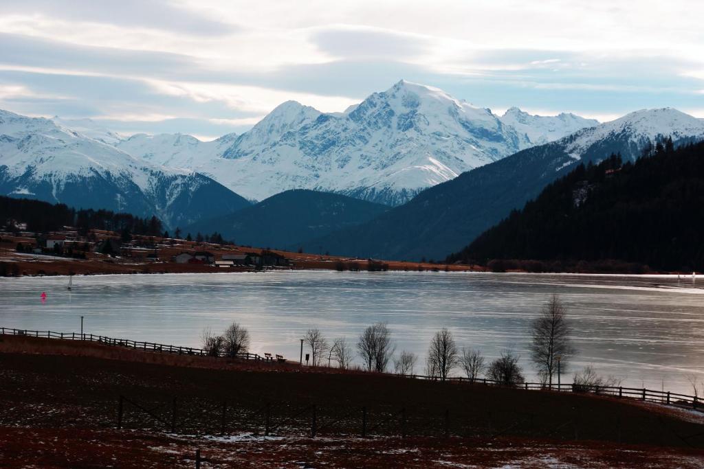 S. Valentino alla Muta è, accanto a Curon e Resia, il terzo paese dell’altipiano del lago di Resia in Val Venosta. Si distende, insieme alla frazione Case dei pescatori, lungo le rive del lago naturale di S. Valentino, che – come il suo fratello grande, il lago di Resia – d’inverno diventa meta per pattinatori e d’estate un paradiso per gli sport acquatici e la pesca.Il lago di S. Valentino un tempo si chiamava “Lago Certosa” perché era di proprietà del convento della Certosa in Val Senales. Da S. Valentino alla Muta scende verso sud la piana di Malles, che apre l’altipiano di Resia e lo immette in Val Venosta. Da qui si ha una vista impressionante sull’imponente massiccio dell’Ortles, con 3.905 metri la montagna più alta del Tirolo.Informazioni