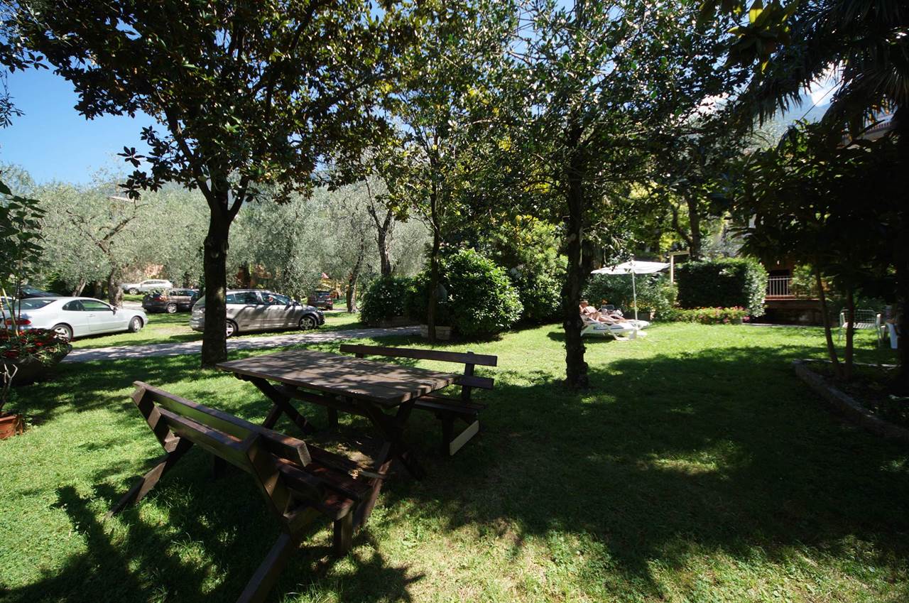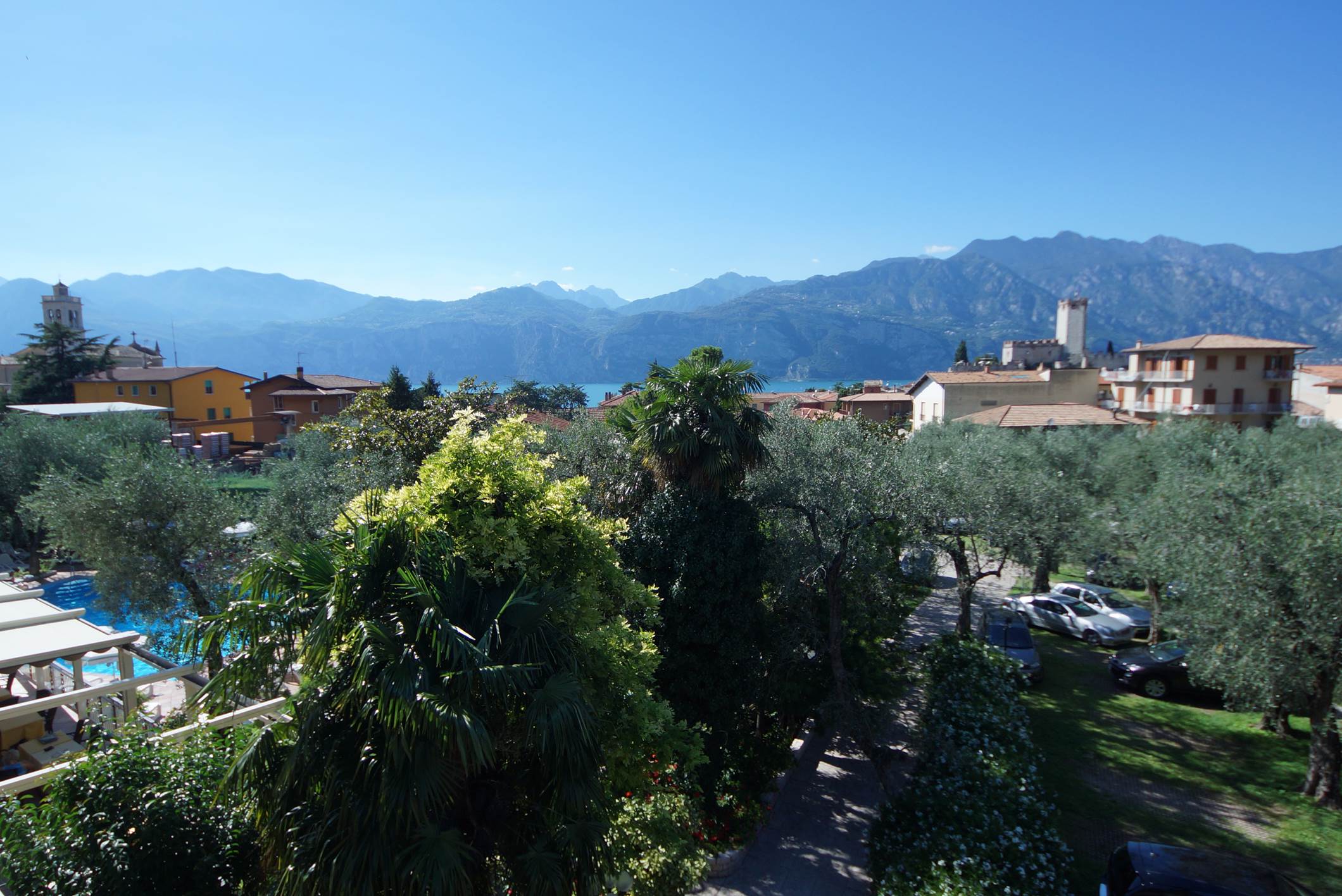 All’esterno, gli ospiti possono rilassarsi nella piscina con solarium o leggere un libro all’ombra degli ulivi. La struttura offre inoltre un parcheggio privato, un bar interno e noleggio biciclette per esplorare i dintorni. Il centro di Malcesine, con il suo caratteristico castello scaligero, i ristoranti tipici e il porto, è facilmente raggiungibile a piedi.