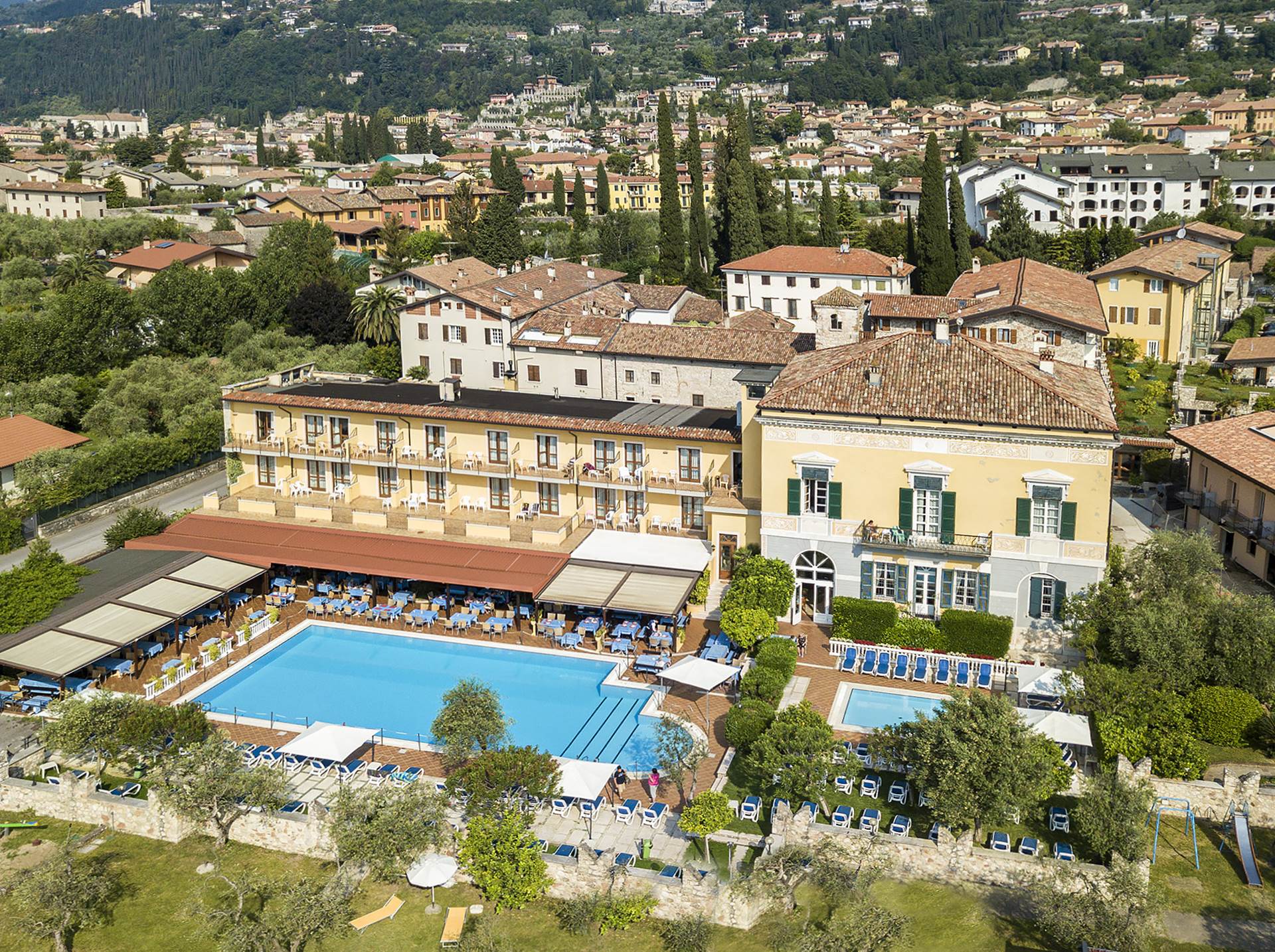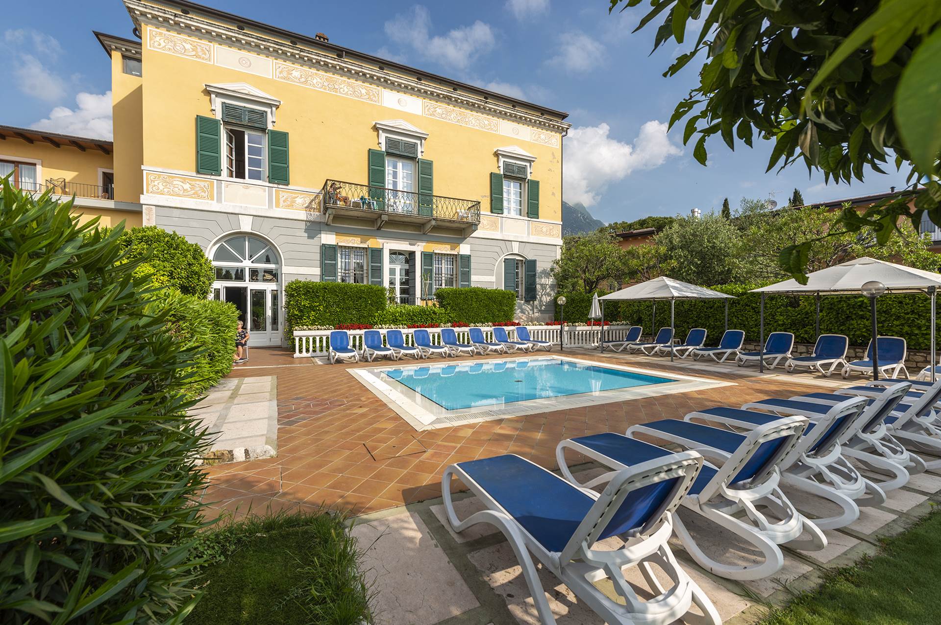 Colazione a buffet. Per chi prenota in mezza pensione: cena con menu di 3 portate, con scelta di menu (3). Primo, secondo con contorno, dessert. Bevande escluse Ascensore presente solo in una parte della struttura. La parte dov'è il ristorante non ha ascensore Posto auto in garage convenzionato presso il nuovo Centro Migros che si trova poco prima dell'entrata al complesso. Da prenotare in anticipo Parcheggio non custodito, incluso nel prezzo Garage, non custodito, € 10.00 da pagare in loco. Animali ammessi, su richiesta. € 10.00 al giorno, da pagare in loco. Piccola taglia. Max. 1 per unità. Non ammessi nell'area piscina / ristorante. Cambio lenzuola ogni 3 giorni Cambio asciugamano giornaliero Piscina esterna, 25/8, aperta da aprile a settembre, in base alle condizioni meteo. Carte di credito accettate: Visa, Carta Si, Mastercard, Bancomat/Maestro Con min stay 7 notti 1 entrata per pax/soggiorno alla Limonaia del Castel di Limone sul Garda Culla, su richiesta, € 10.00 al giorno, da pagare in loco. Tassa di soggiorno € 2.20 al giorno, da pagare in loco. Importo soggetto a variazioneCamere